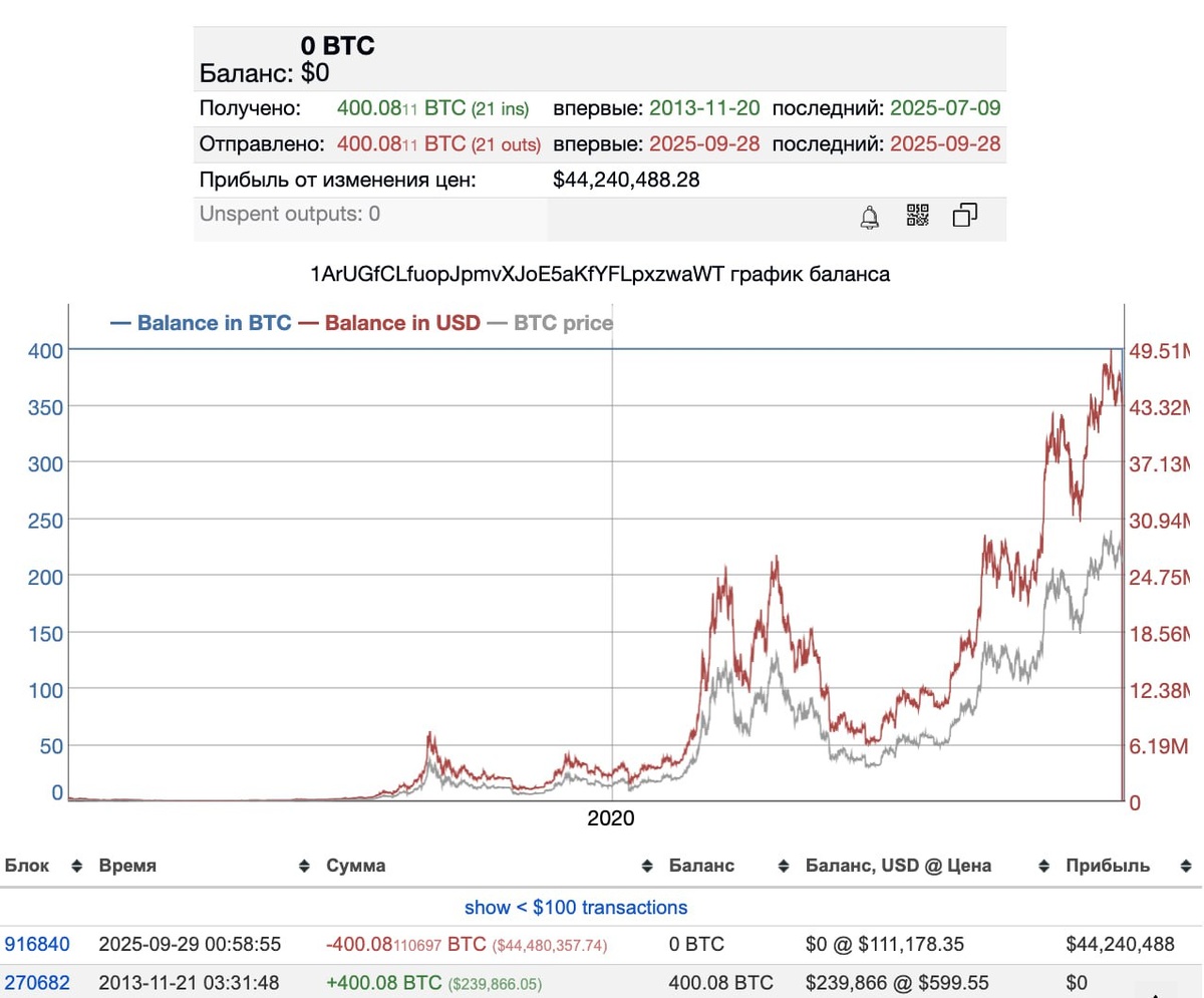 😱 12 лет спячки: биткоины на $44 млн проснулись!💸