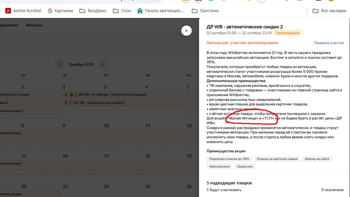 И второй: Цена по ДР ВБ не будет учитываться в расчете цен на черную пятницу.