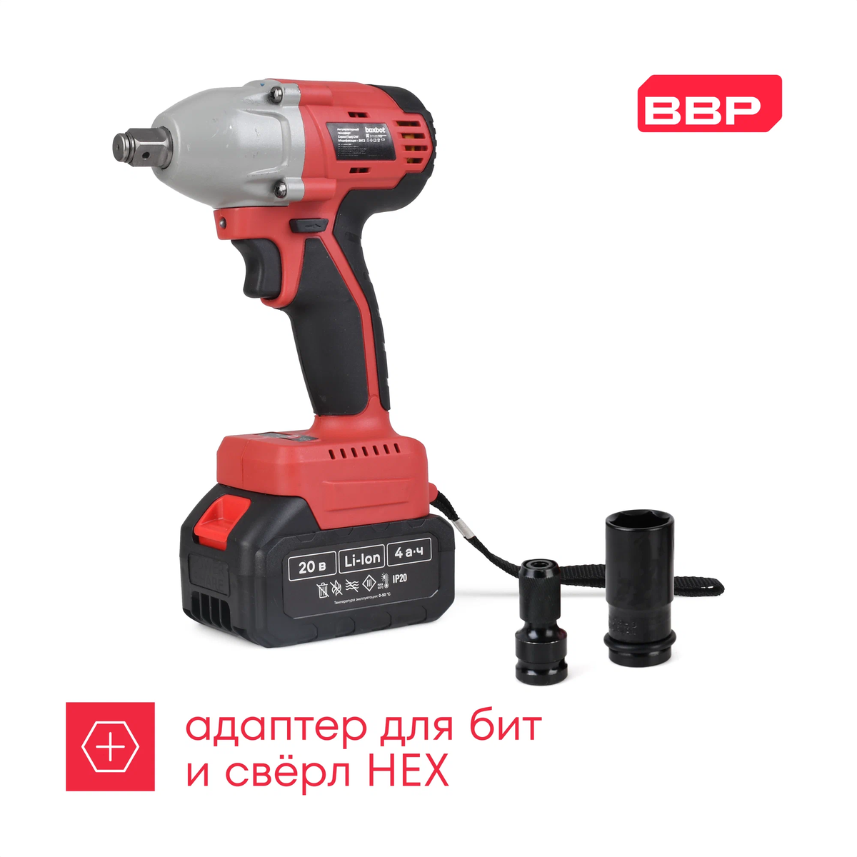 С его помощью вы сможете снять колёса с вашего авто, собирать и разбирать металлоконструкции и мебель, а входящий в комплект адаптер для бит и свёрл с шестигранной посадкой, расширит его возможности и позволить откручивать и закручивать