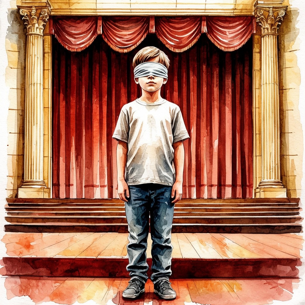 Сашка сорвал с глаз повязку и стоял красный, как помидор. Из-за кулис вылез бледный, как полотно, Юрка. Они смотрели друг на друга, на смеющийся зал, и вдруг… сами начали смеяться. Сначала смущённо, а потом всё громче и заразительнее.