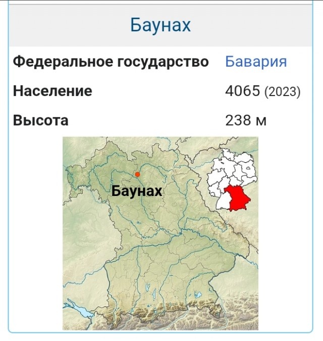 Карта Германии, с указанием расположения Баварии и города Бауннах.