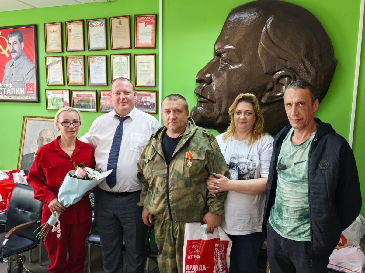 В Ивановском обкоме КПРФ состоялась встреча с бойцом СВО🤝 На минувшей неделе Ивановский обком КПРФ с визитом посетил боец с позывным «Самсон», защищающий рубежи России в зоне специальной военной операции. Его сопровождали руководитель Вичугского городского отделения ВЖС «Надежда России» Наталья Горожанина и волонтеры. Целью визита стала личная благодарность от военнослужащих Ивановскому обкому КПРФ и волонтерской группе «Наследие мужества» за оказанную поддержку. При содействии партии и общественников для нужд подразделения был приобретен радиатор для автомобиля «Камаз», а также передана другая гуманитарная помощь. В ходе встречи Первый секретарь Ивановского обкома КПРФ Александр Бойков вручил бойцу «Самсону» памятную медаль ЦК КПРФ «80 лет Победы». Также по просьбе военнослужащих Александр Бойков передал на передовую 10 флагов Знамени Победы и 8 Знамен СССР для поднятия боевого духа защитников Отечества. В мероприятии также приняла участие организатор группы «Наследие мужества»