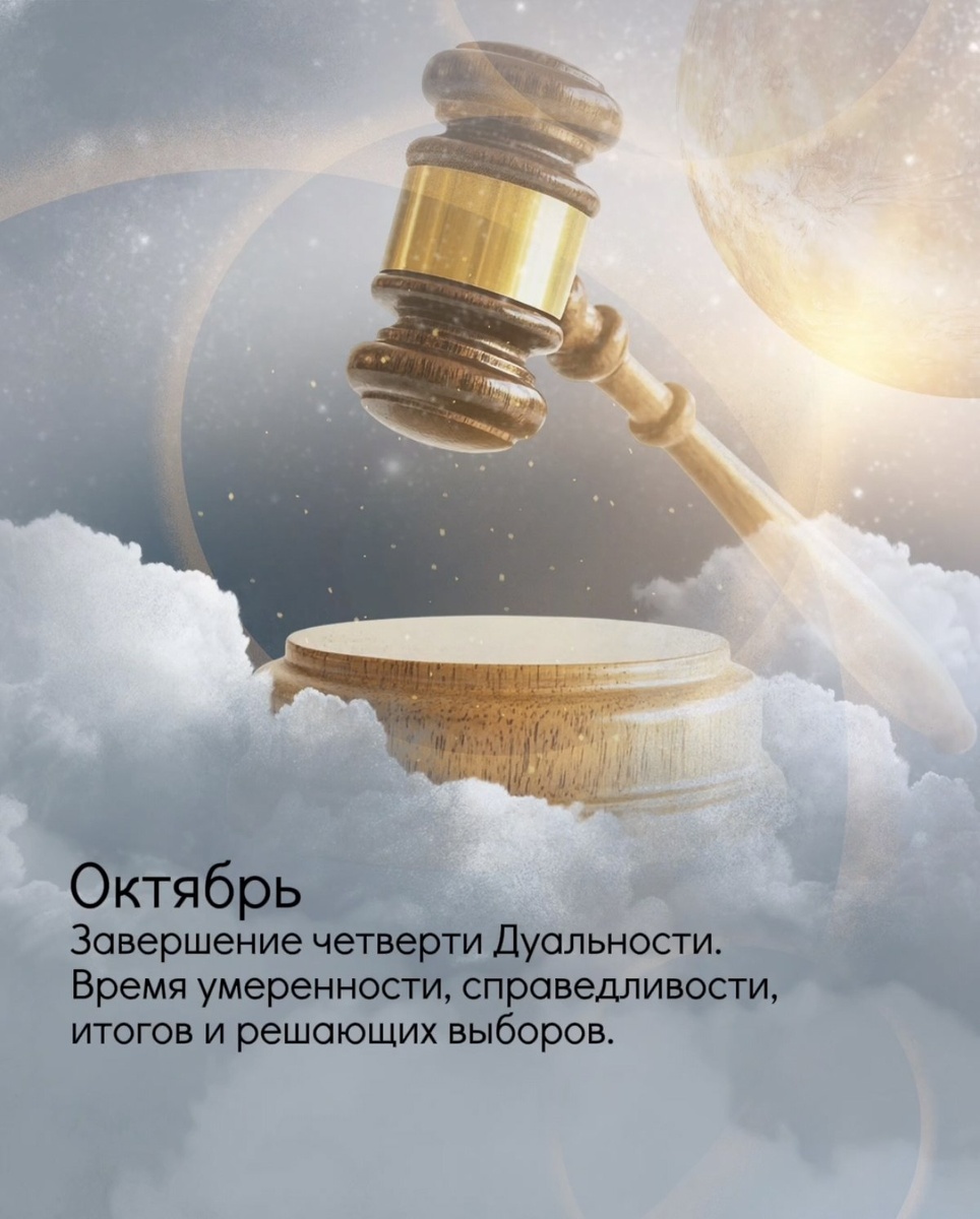 Октябрь. Завершение четверти Дуальности. Засыпание стихии Воды. Время умеренности, справедливости, итогов и решающих выборов. Вот мы и перешли черту перехода через Мабон и вновь ступили на Тёмную часть года, когда Ночь входит в своё правление, а День постепенно уступает ей свои права. Октябрь — это по сути период завершения процессов Мабона и уходящей стихии Воды, а также подготовка к Самайну (31 октября — 1 ноября), или Празднику предков, и началу четверти Мутиции (трансформации Духа). Далее после Самайна нас ждёт «Ночь Года», но это уже история, которая будет рассказана ближе к ноябрю. Пока же, в октябре, наша главная задача — мудрое и честное подведение итогов, своего рода справедливый суд, где судьёй выступаем мы сами, и мы же — свой собственный подсудимый. Это не о том, чтобы корить себя и посыпать голову пеплом, а о наведении порядка в мире внутреннем и внешнем. Здесь важно обернуться на свой Путь, пройденный за Светлую часть года (с апреля по сентябрь), и объективно увидеть,