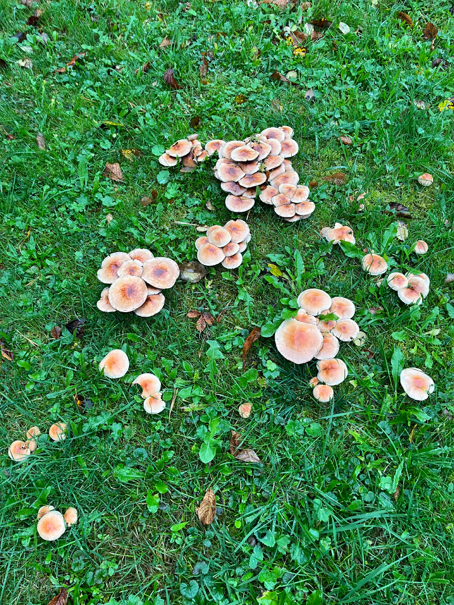 Здравствуйте! Продолжаю свое повествование о выходных днях. В субботу вечером приехал сын, а его друзья, семейная пара с дочкой обещали приехать в 12+😊 Ну а мы проснулись рано, выспались, позавтракали и сын предложил сходить куда-нибудь по округе, поискать грибы, пока гости не приехали. Он тоже любит собирать, как и я). Меня долго уговаривать не надо😀, быстро собрались и пошли. Вот на нашей улице возле одного из домов на лужайке уже они— грибы😀.. прямо в деревне. Но это ложные опята, Алиса подсказала. Мы вышли на трассу и повернули налево. Примерно метров через пятьсот есть указатель на базу отдыха Высотка. Нужно повернуть направо и по хорошей дороге придешь к водохранилищу, а там сосны.. все красиво и возможно под соснами есть грибы. Но это было бы совсем просто и по этой дороге уже ходили и все там знаем. Поэтому сын предложил пройти по трассе подальше, ближе к д. Рождествено и уже там повернуть направо и выйти к водохранилищу. Он предположил, что и там должны быть сосны… но