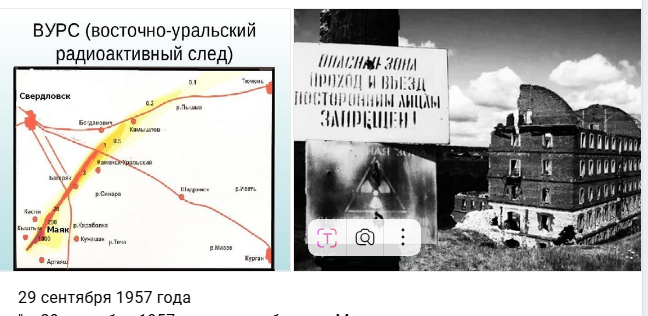 "... 29 сентября 1957 года на комбинате «Маяк» в ста двадцати километрах к югу от Свердловска произошёл взрыв ёмкости с высокоактивными отходами. 6 октября 1957 года в центральной газете появилась следующая заметка: «В прошлое воскресенье вечером... многие челябинцы наблюдали особое свечение звёздного неба. Это довольно редкое в наших широтах свечение имело все признаки полярного сияния. Интенсивное красное, временами переходящее в слабо-розовое и светло-голубое свечение вначале охватывало значительную часть юго-западной и северо-восточной поверхности небосклона. Около 11 часов его можно было наблюдать в северо-западном направлении... На фоне неба появлялись сравнительно большие окрашенные области и временами спокойные полосы, имевшие на последней стадии сияния меридиональное направление. Изучение природы полярных сияний, начатое ещё Ломоносовым, продолжается и в наши дни. В современной науке нашла подтверждение основная мысль Ломоносова, что полярное сияние возни
