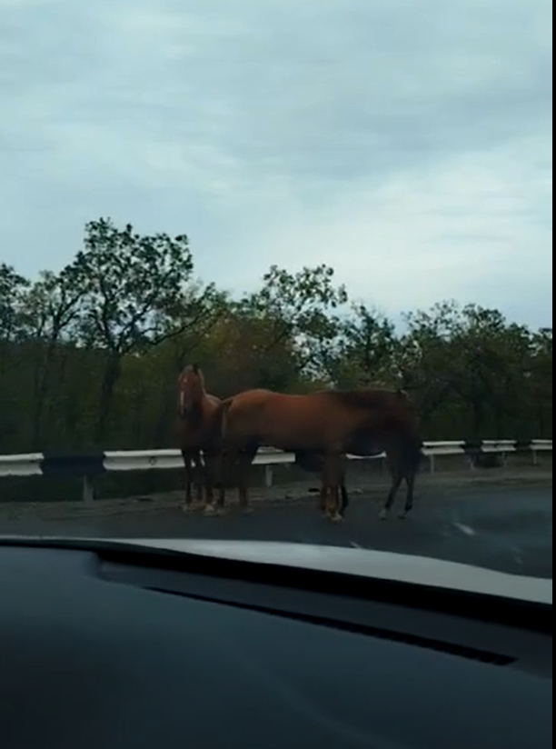 На крымских серпантинах стоит быть аккуратнее и сильно не гонять - за поворотом вас могут ждать прямо посреди трассы нерасторопные лошади😅 Место - Судакское шоссе, в районе горы Малбанын-Хыры💙 Дальше мы еще встретили компанию козочек, большую семью баранов и одинокую корову 🐄 #Крым #Судакскоешоссе #Лошади #полуостров #КрымвСердце