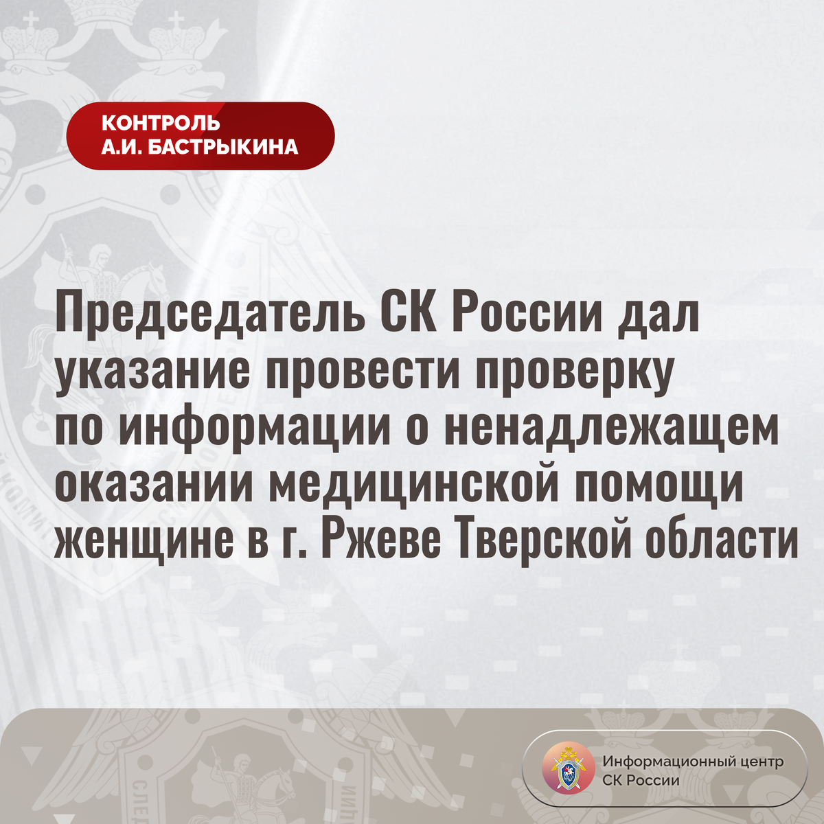 Председатель СК России дал указание провести проверку по информации о ненадлежащем оказании медицинской помощи женщине в г. Ржеве Тверской области