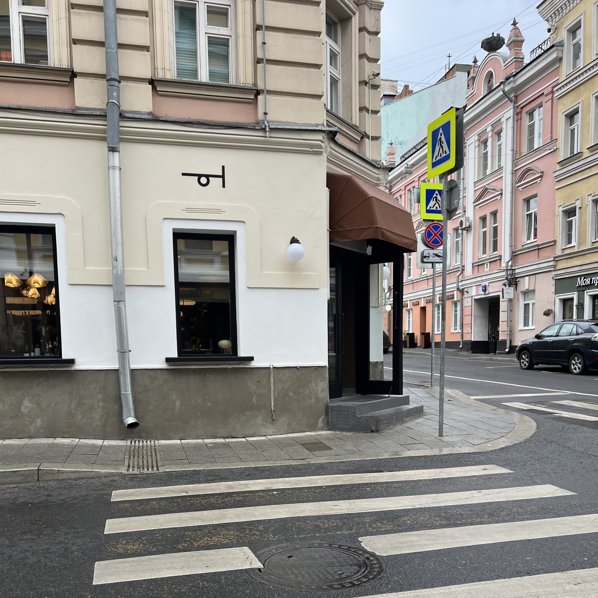 Месторасположение у проекта модное, гастрономическое и перспективное. В районе Трубной и Цветного бульвара, в тишине, минуя ажиотаж, уже давно работает и развивается очень даже добротный общепитовый кластер, так что появление там «Трубы» удивлять не должно. Дом угловой, давний, дореволюционный, отреставрированный, ранее по этому же адресу довольно долго проживало заведение «Италия», но в 2025 году Италию сменила Франция. Фасад светлый, на нем красиво написанное название. Через дорогу «Прекрасная леди», и это я не про даму на тротуаре, а про магазин. Входов два.