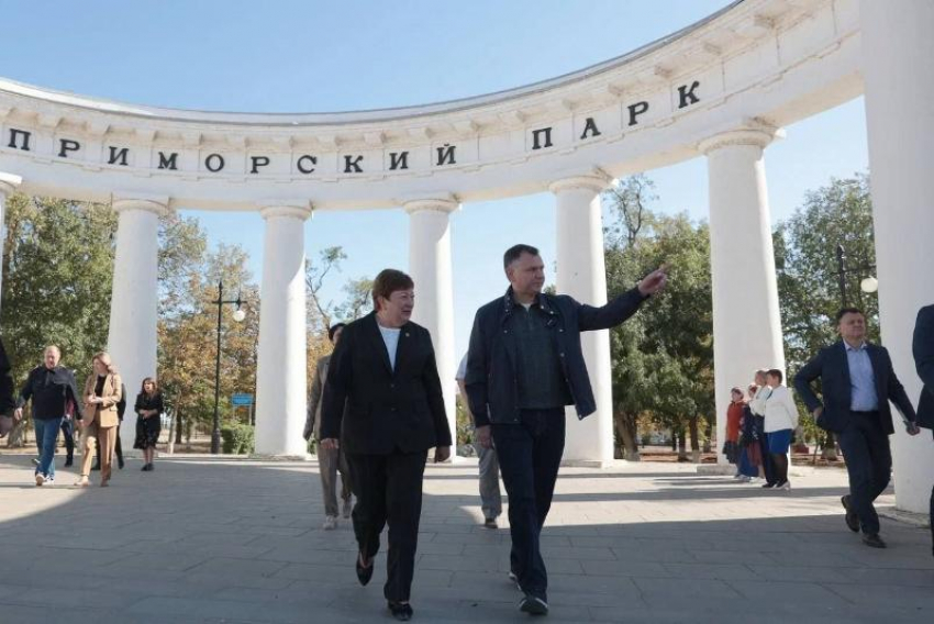 В рамках рабочей поездки Юрий Слюсарь также посетил Приморский парк и поднялся на ротонду, построенную к открытию Цимлянской ГЭС. Сооружение, возведенное в ожидании визита Сталина, впечатляет своим масштабом и духом эпохи.