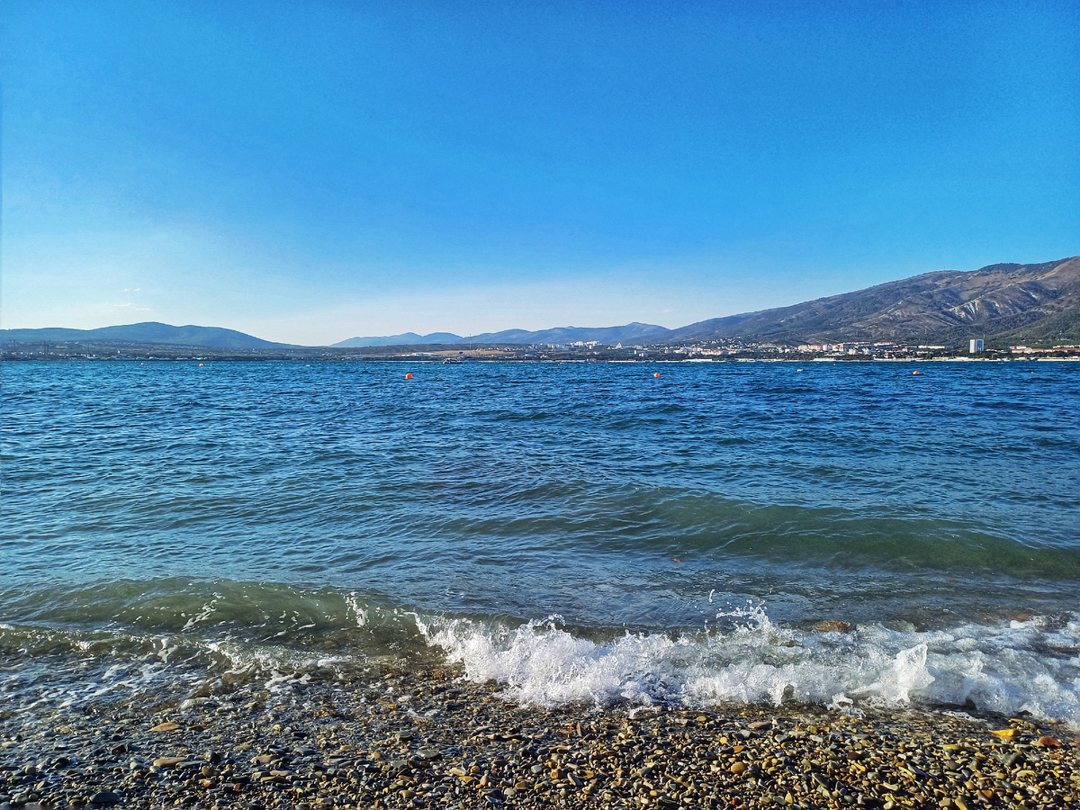 Всем привет! С самого начала сентября завертелась жизнь круговоротом дел неотложных, событий шумных и свалившихся на голову проблем неожиданных. После размеренного лета, яркого и позитивного, весь этот бешеный ритм быстро утомил. Вечером пятницы руки сами потянулись за сумкой дорожной. Пора усталость морем снимать. Через час изучения гостиниц на карте, бронируем маленькую студию. Вещи уже упакованы и настроение сразу на высоте) Субботнее утро. Тепло, солнечно. Допиваем кофе и усаживаемся поудобнее в автомобиль. Шум дороги, интенсивное движение и голубое небо с фактурными облаками. Делаем остановку на привычном месте. Следующая в Краснодаре в Помпончике. Кассир что-то бормочет невнятно, того нет этого тоже. -А что же есть? - Все! - Так продайте.... - Нет еще...уже... Подходит другая кассирша, легко принимает заказ и вскоре обед занимает свое место на нашем столе. Солнце припекает, сильный ветер трепет макушки деревьев. Длинная пробка в Горячем ключе на 20 минут. Лес в горах начал окр