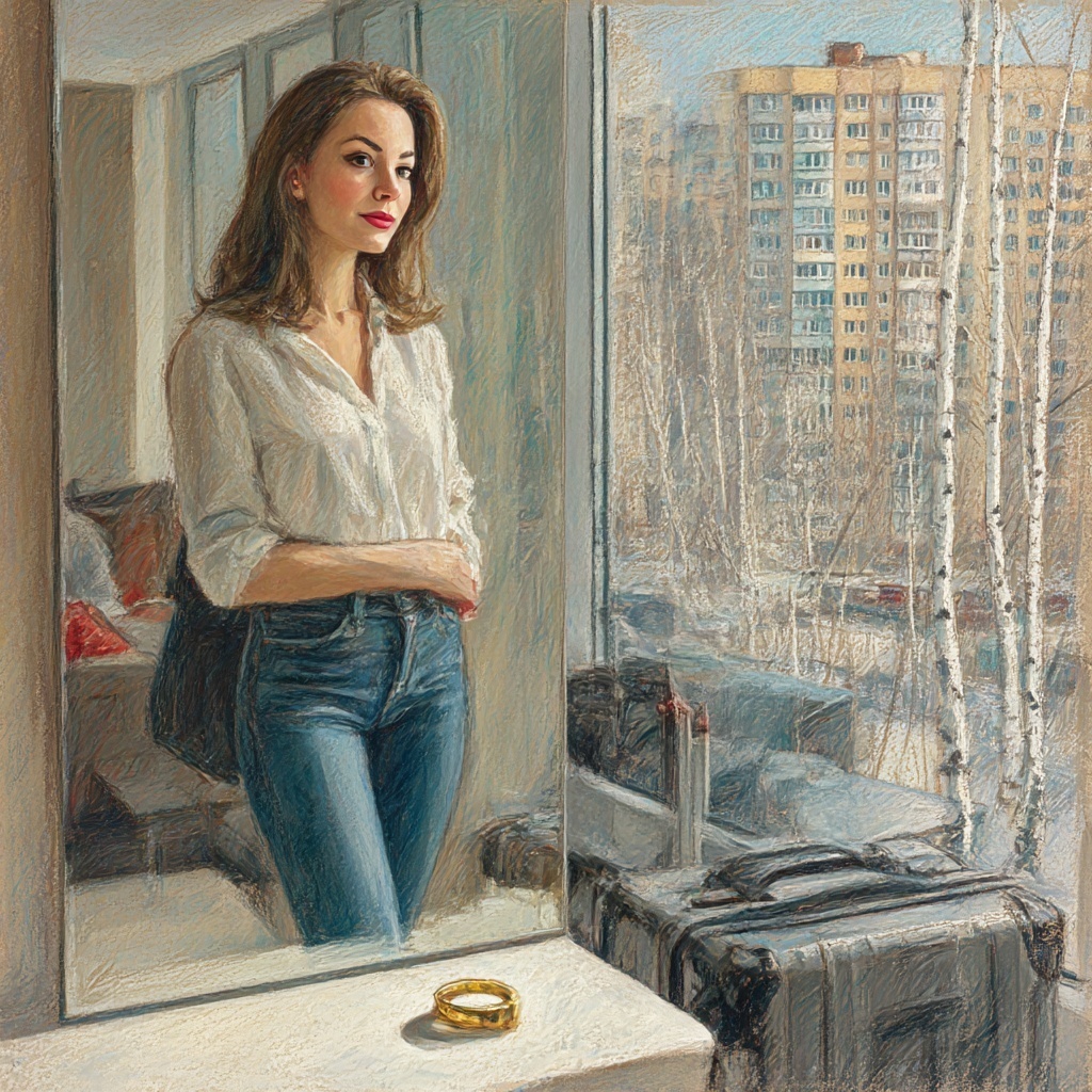 Вещи собирала выборочно — только самое необходимое. Документы, ноутбук, несколько комплектов одежды, любимая кружка с уточками — подарок сестры. Обручальное кольцо сняла, покрутила в руках. Простое, золотое, внутри гравировка "Навсегда". Положила на стол в прихожей.