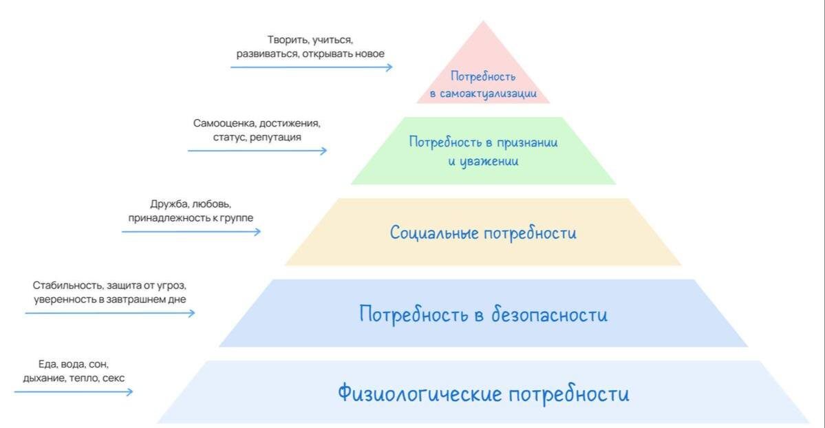 Витальные потребности человека — это базовые жизненно важные условия, без которых невозможно нормальное функционирование организма. К ним относятся сон, питание, потребление воды, обеспечение безопасности и физического комфорта. Согласно пирамиде Маслоу, эти потребности находятся на самом нижнем уровне и являются основой для удовлетворения всех остальных, более сложных потребностей. Если бы я начинала работу с тревожностью, то в первую очередь обратила бы внимание именно на витальные потребности. Отрегулировать режим сна, наладить правильное и регулярное питание, обеспечить достаточное потребление воды — это простые, но важные шаги. Они помогают стабилизировать физиологическое состояние, снижают уровень стресса и создают прочную базу для дальнейшей работы с эмоциональными и психологическими проблемами. Таким образом, прежде чем переходить к глубокой проработке тревожности, стоит убедиться, что витальные потребности удовлетворены, ведь без этого любые психотерапевтические методы буд
