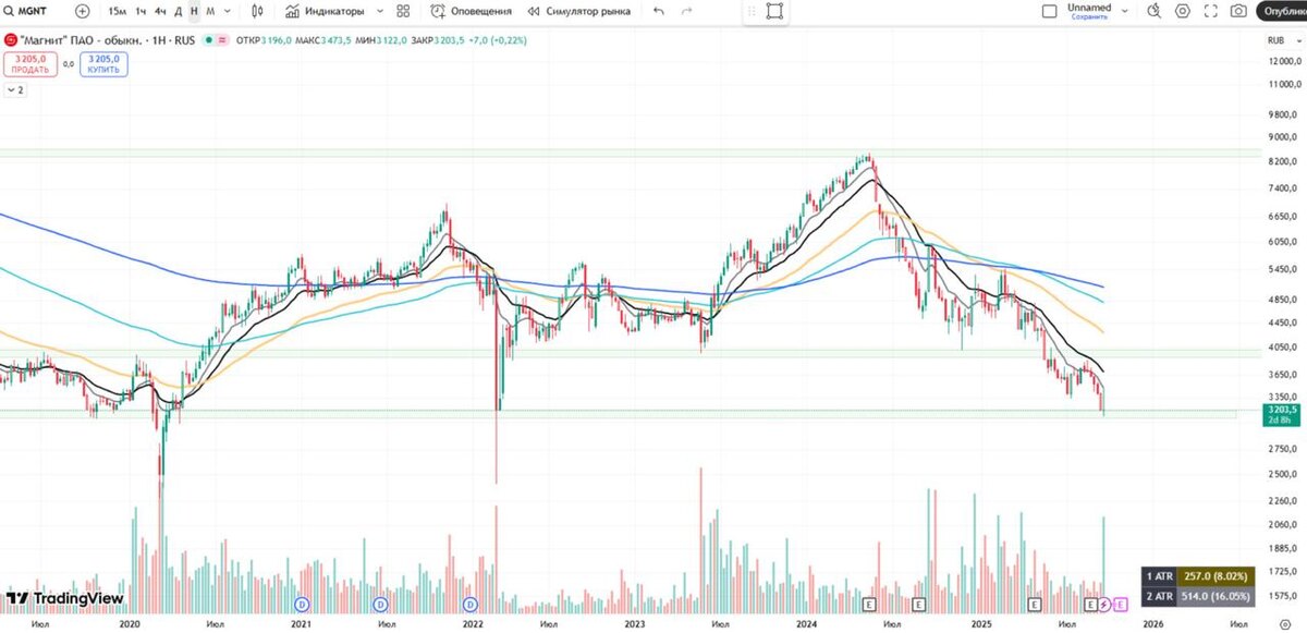 📉 Если договор не будет продлен после этой даты, Магниту придется объявить предложение о выкупе, а значит выкупить бумаги у миноритариев по средней цене за последние полгода, которая составляет около 4100 рублей — это на 30% выше текущих котировок. Именно эта потенциальная премия и привлекает краткосрочных спекулянтов, вызывая рост акций.