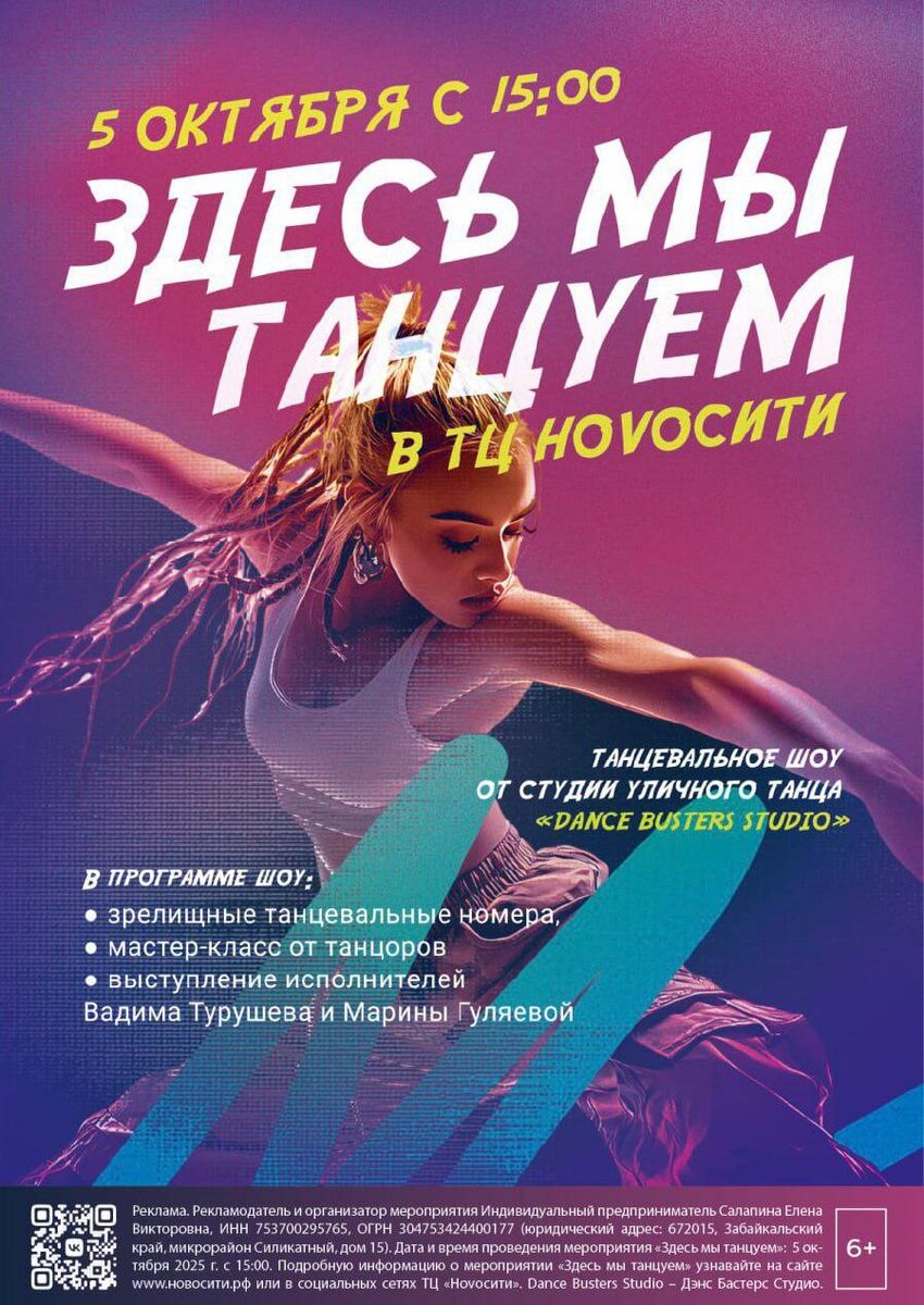В ТЦ «Ноvосити» состоится танцевальное шоу Организаторы – студия уличного танца «Dance Busters Studio» Что будет в программе: – Зрелищные танцевальные номера – Мастер-класс от педагога студии «DBS» – Выступления исполнителей Вадима Турушёва и Марины Гуляевой – Творческие коллаборации 🕐5 октября, 15:00 📍ТЦ «Новосити» 🪙вход свободный #Новости Предложить публикацию:@zabkulisye_bot
