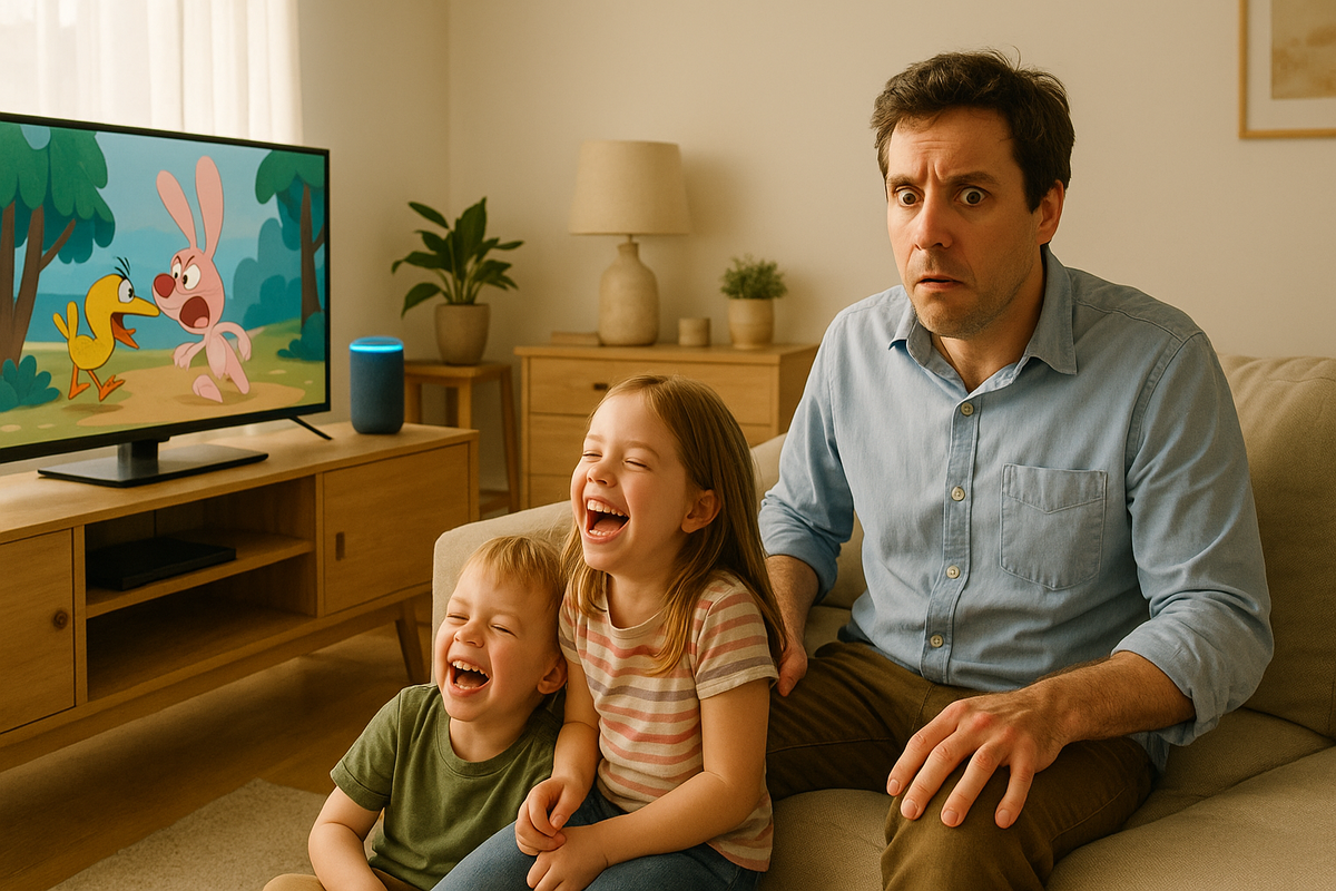 Утро в семье всегда начинается одинаково: родители включают новости, чтобы узнать, что происходит в мире, а дети готовятся к школе. Всё идёт по расписанию, пока в процесс не вмешивается техника. Однажды умная колонка решила, что слушать надо не папу с его «Включи новости», а детей, которые хитро смотрели на экран. Итог: вместо утренних сводок на телевизоре заиграли мультики. Смешно для детей, раздражающе для родителей, и по-своему поучительно для всех. Папа подошёл к колонке и чётко произнёс: