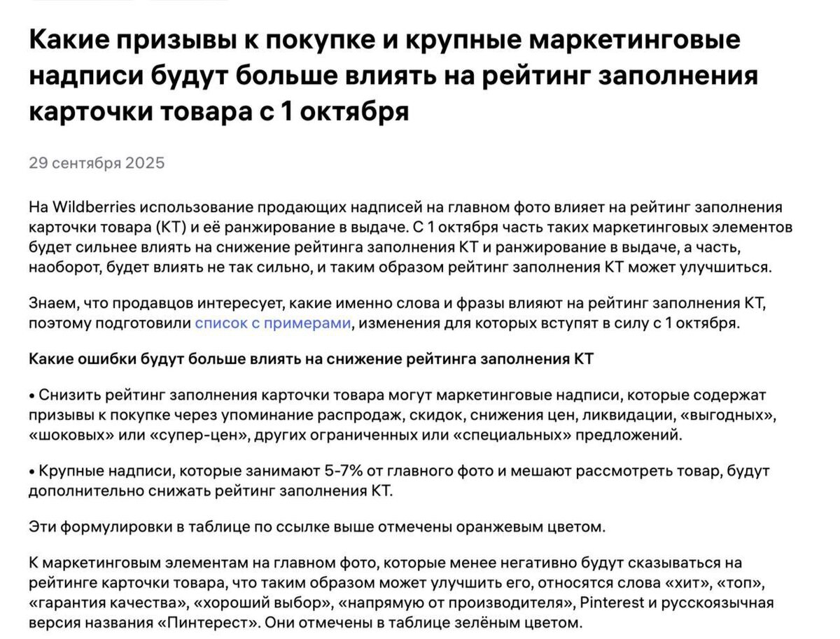 π ΠΠ±Π½ΠΎΠ²Π»Π΅Π½ΠΈΠ΅ ΠΏΡΠ°Π²ΠΈΠ» ΠΎΡΠΎΡΠΌΠ»Π΅Π½ΠΈΡ ΠΊΠ°ΡΡΠΎΡΠ΅ΠΊ Π½Π° Wildberries Π‘ 1 ΠΎΠΊΡΡΠ±ΡΡ ΠΈΠ·ΠΌΠ΅Π½ΡΡΡΡ ΡΡΠ΅Π±ΠΎΠ²Π°Π½ΠΈΡ ΠΊ ΠΌΠ°ΡΠΊΠ΅ΡΠΈΠ½Π³ΠΎΠ²ΡΠΌ Π½Π°Π΄ΠΏΠΈΡΡΠΌ Π½Π° ΠΈΠ·ΠΎΠ±ΡΠ°ΠΆΠ΅Π½ΠΈΡΡ