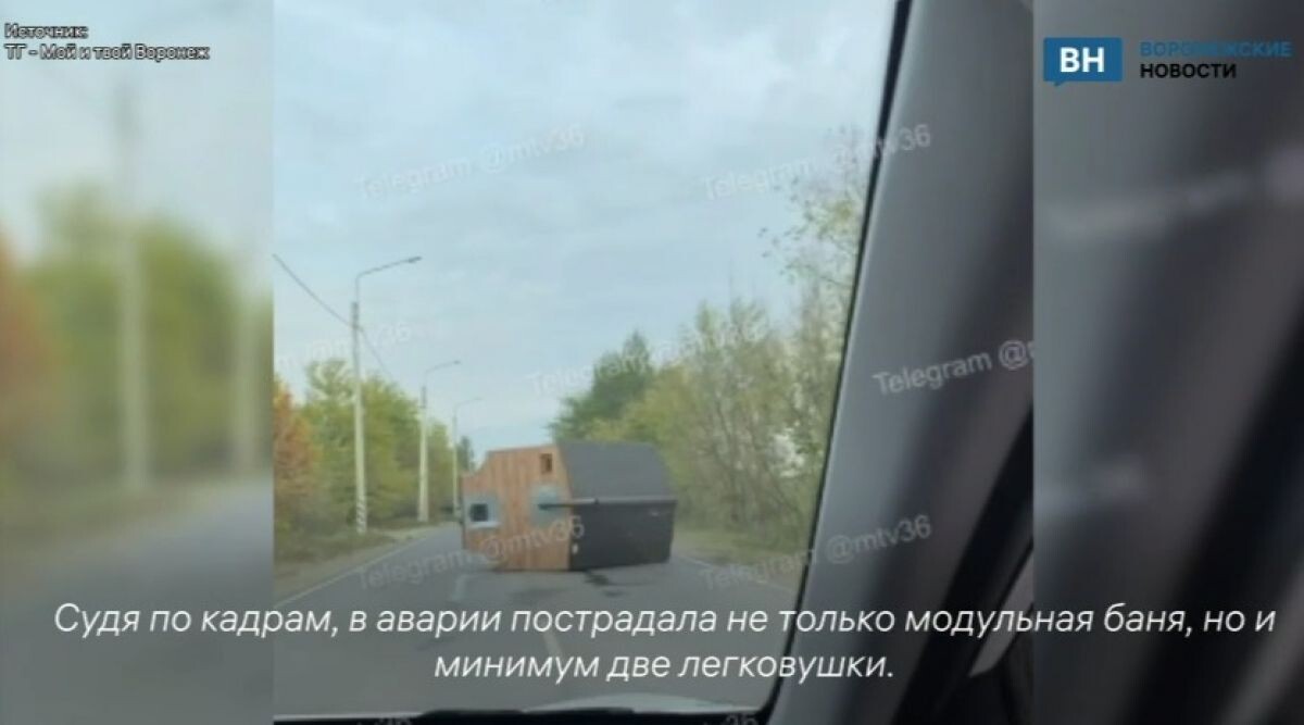 В Воронежской области трассу перегородила перевозная баня. Кадры с места опубликовал "Мой и твой Воронеж".