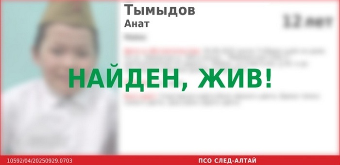 Двенадцатилетнего мальчика, пропавшего несколько дней назад, нашли, он жив. Об этом сообщает Национальный центр помощи Республики Алтай. По данным республиканского следственного управления СКР, информация о пропаже школьника в селе Майма поступила в ведомство 29 сентября. Родственники рассказали полицейским о том, что 26 сентября в 7:30 мальчик ушел в Майминскую школу №1 и не вернулся домой. Следствие организовало по данному факту проверку. Сотрудники межрайонного следственного отдела осмотрели жилище ребенка, опросили его одноклассников, учителей, соседей по дому и других. Также изучаются данные о семье мальчика. В поисках принимали участие сотрудники полиции и волонтеры. Мальчик был найден в Горно-Алтайске.