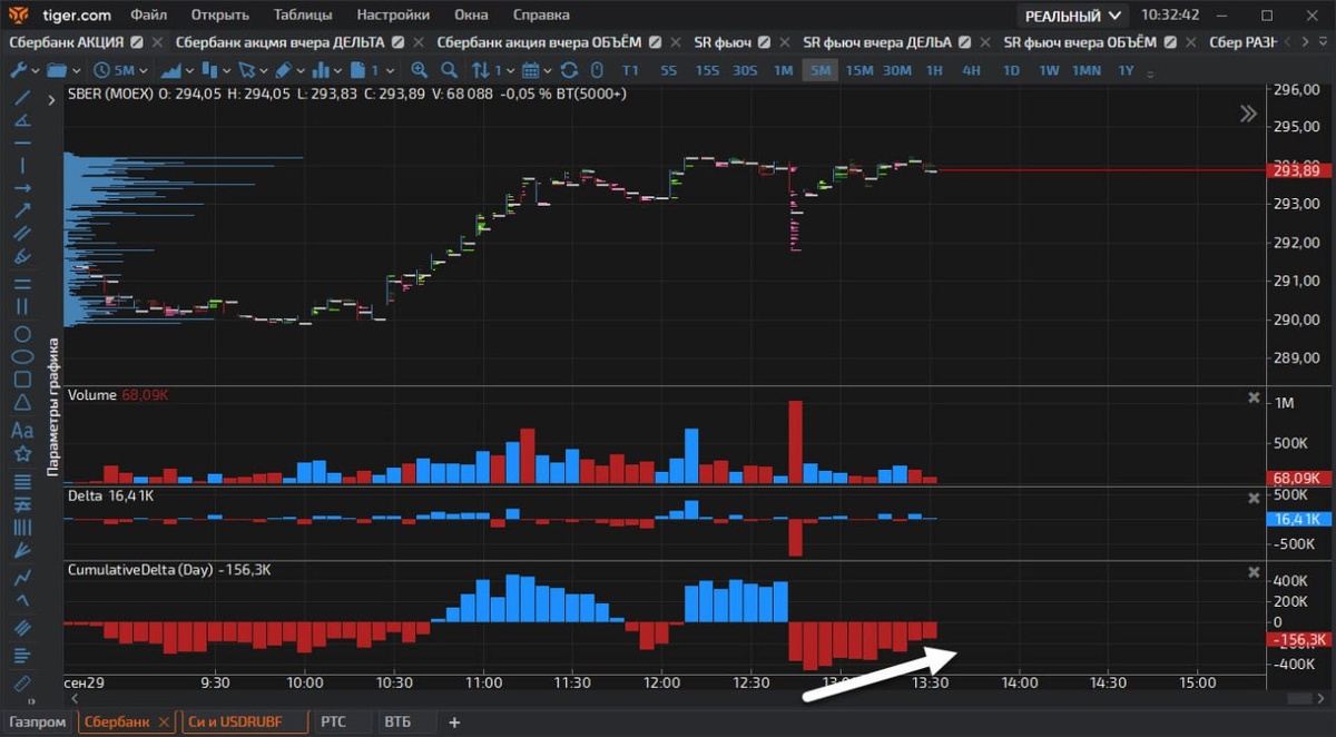 Однако пока и со стороны покупателей вполне себе приличное давление сохраняется. На данный момент проторговка укладывается в поглощение продаж и выбирать сторону пока рано. Вернее, пока при сохранении давления логичнее ждать выхода вверх и продолжения тренда или добоя.
