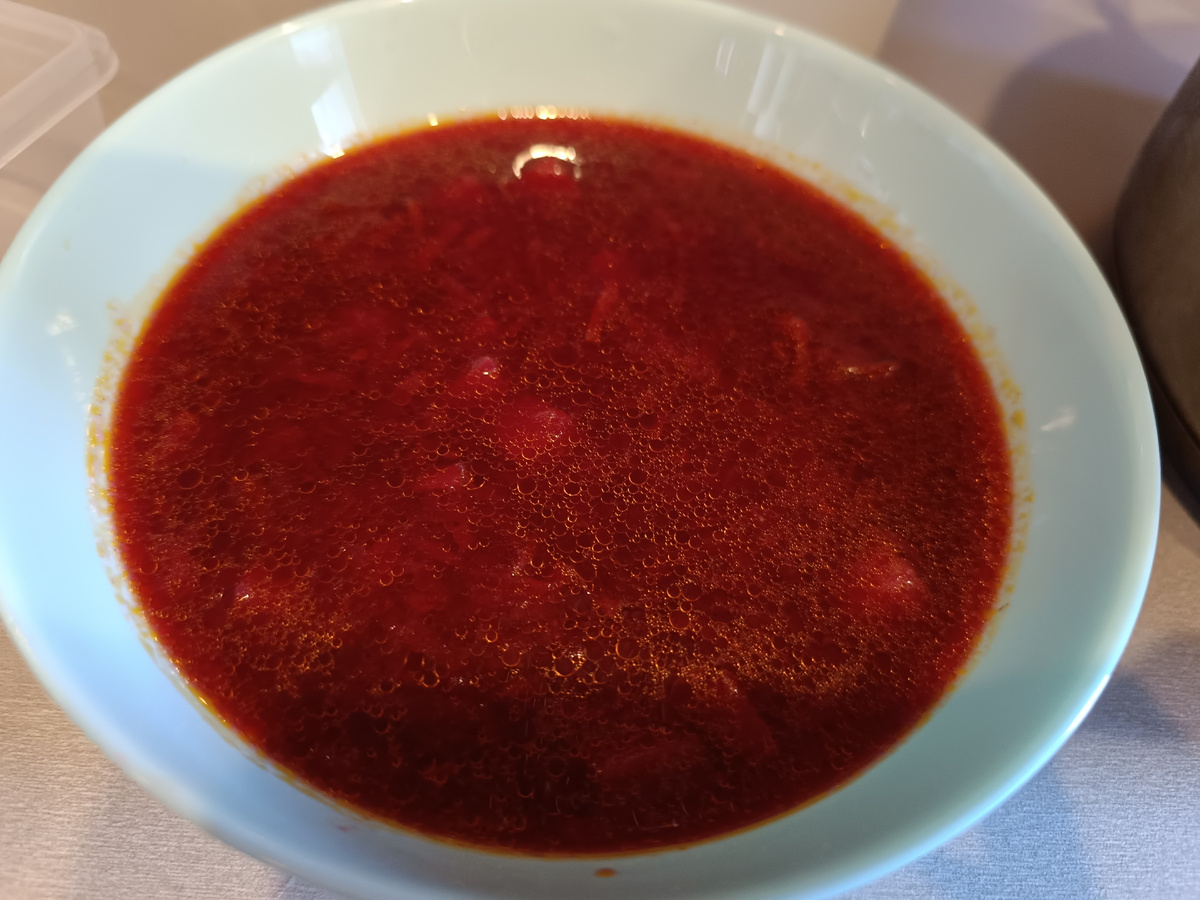 Расскажу на примере борща, который я готовила и морозила крайний раз. Я не готовила суп специально для заморозки, на такие подвиги я не способна. Варила суп как обычно для семьи, но по обьему больше, чем было необходимо, с запасом примерно на 2 порции. Я налила порцию супа в тарелку, мне показалось, что это стандартная порция в нашей семье.