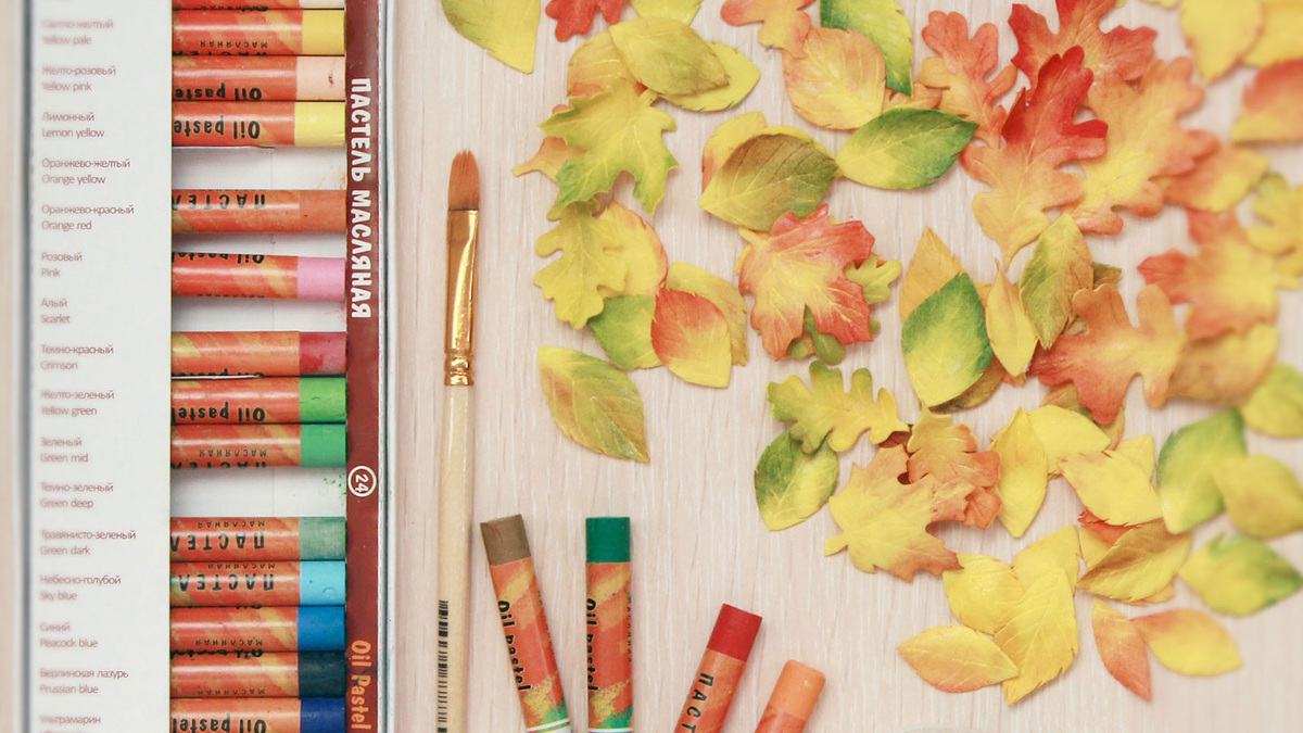 Для тонировки я выбрала масляную пастель нескольких оттенков: красный, оранжевый, коричневый, зелёный.