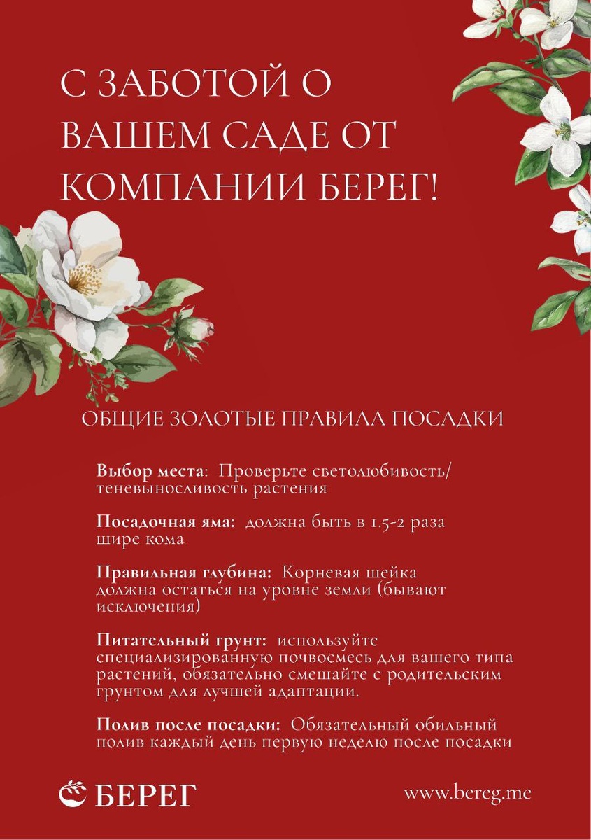 🌳 Лиственные: как добиться шикарной кроны и здорового вида? Вы купили саженец и правильно его посадили по нашей памятке. Что дальше? Главное — последующий уход! Давайте разберем по шагам. Посадка: закрепляем основы Вы уже прочитали основы в памятке,но на этих моментах не стоит экономить: ⏺Посадочная яма: Помните правило «в 1.5-2 раза шире кома»? Это не просто так! Пространство нужно для активного роста корней. ⏺Корневая шейка: Для деревьев это критически важно. Заглубление корневой шейки = верный путь к гибели растения. Она должна остаться строго на уровне земли. ⏺Питательный грунт и трамбовка: При засыпке ямы обязательно уплотняйте грунт слоями! Это исключит образование пустот, в которых корни просто сгниют. 🚿Полив в первый год: система — ваш лучший помощник Это самый важный этап для приживаемости. ⏺Первая неделя: Вне зависимости от погоды, поливаем обильно каждый день. ⏺Далее: Переходим на гибкий график, ориентируясь на погоду, тип почвы и растение. В жару — через день или еж