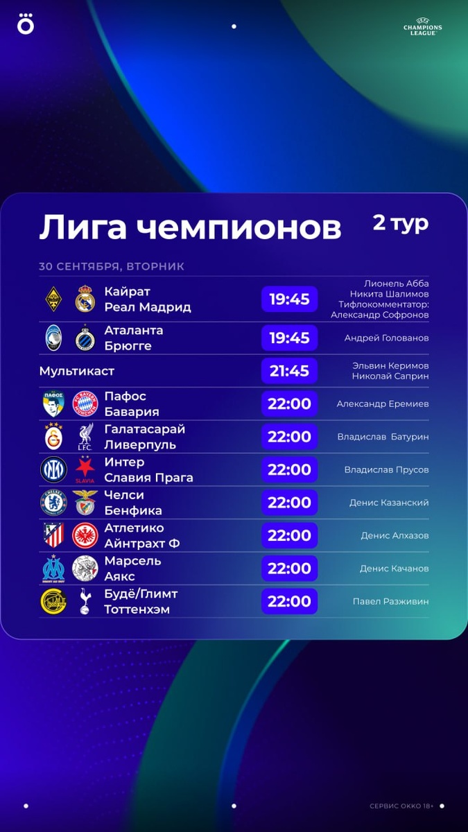 🏆 Расписание второго тура общего этапа ЛЧ. Изучаем внимательно.