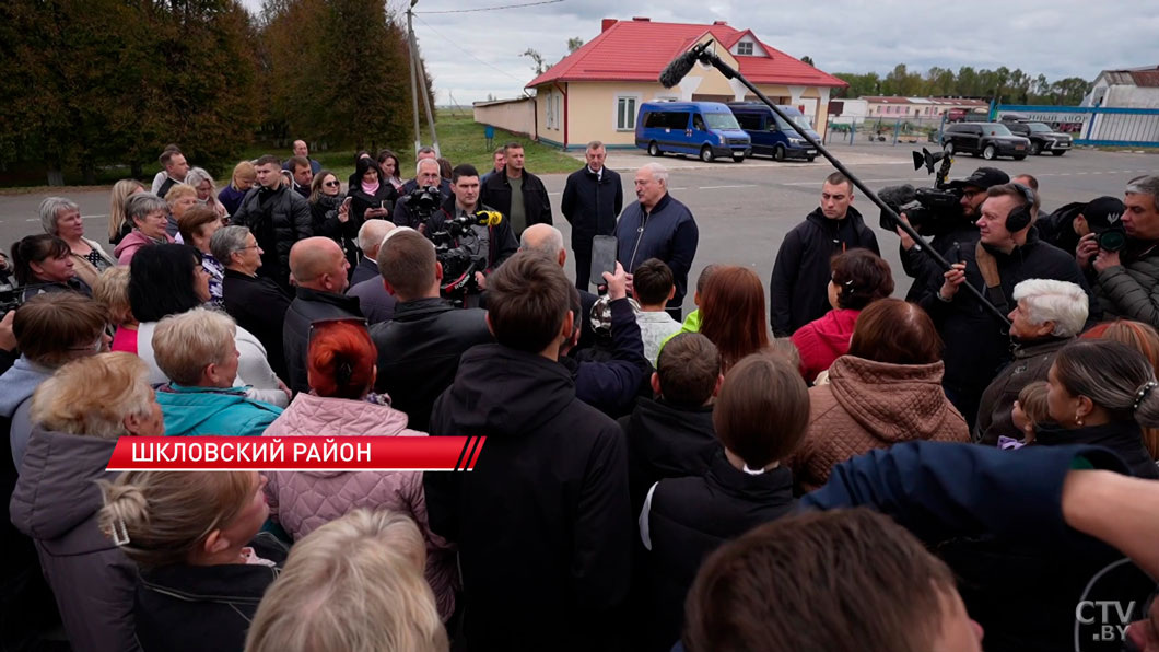«Лучше работать на земле, чем воевать» – вы, конечно, помните эту фразу нашего Президента, которая как нельзя лучше по-человечески мудро и по-народному просто объясняет нынешнюю ситуацию в мире и наш взгляд на всё это. И именно эту фразу 27 сентября вновь повторил Александр Лукашенко, рассказали в программе Новости «24 часа» на СТВ. Возвращаясь из Москвы, а накануне, напомним, состоялись многочасовые переговоры с российским лидером в Кремле, Президент остановился на востоке страны. В этот субботний день Александр Лукашенко работал в регионах, которые требуют особого внимания. Шкловский район Могилевской области – здесь главе государства подробно доложили об осенних полевых работах и в районе, и в восточном регионе, и в стране в целом. Увидев автомобиль со штандартами Первого, люди собрались у мехдвора. Некогда труженики советской закалки нога в ногу шли с Александром Лукашенко. Теперь встречают его аплодисментами. Помнят как ответственного директора совхоза и знают как народного Презид