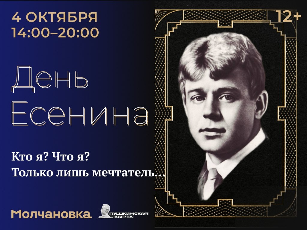 Серия событий и встреч в Иркутской областной научной библиотеке имени И.И. Молчанова-Сибирского будет посвящена творчеству поэта Сергея Есенина в честь 130-летия со дня его рождения. Сергей Есенин - ключевая фигура русской культуры ХХ века. Его стихи читают, учат наизусть и цитируют. Интерес к жизни и творчеству поэта не угасает, а, напротив, становится предметом исследований. Сергей Есенин на карте Иркутска В рамках арт-выходного состоятся лекции о творчестве поэта, открытый микрофон «Мой Есенин», спектакль проекта «Рисуем сказки», интеллектуальная игра на знание творчества и биографии поэта, концерт песен и романсов на стихи Сергея Есенина, тематическая книжная выставка, мастер-классы по ораторскому искусству, росписи, созданию блокнота, фотозона в стиле 1920-х годов. Стоимость арт-выходного с 14:00 до 20:00 часов - 500 рублей, в том числе, по Пушкинской карте. 14:00. Мини-спектакль проекта «Рисуем сказки» по мотивам стихотворений Сергея Есенина. Стиль написания Сергея Александровича