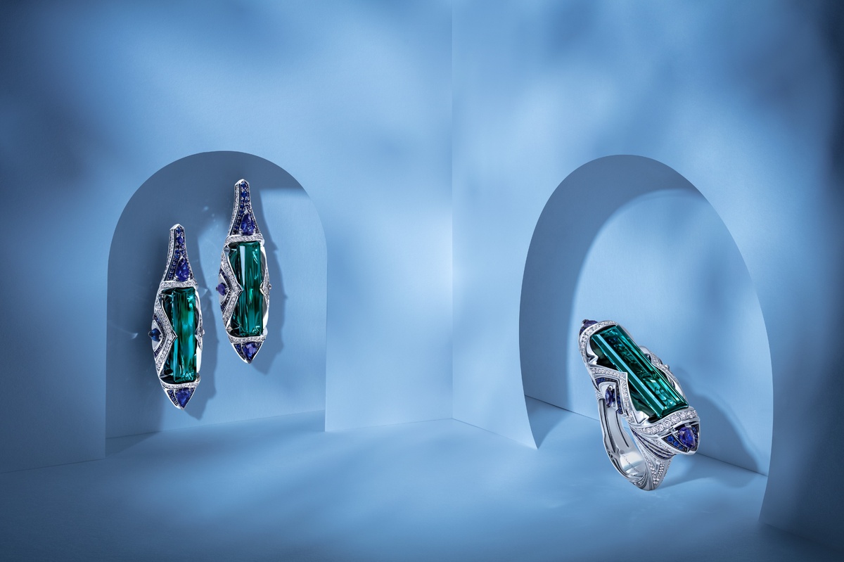 Культурное и природное разнообразие мира на протяжении почти 30 лет занимает важное место в коллекциях CHAMOVSKIKH. Идеограммы, национальные символы, традиции, ценности и наследие вдохновляют мастеров Дома на эксперименты с объемом, цветовыми решениями и формами, проявляясь в восхитительных произведениях ювелирного искусства. Величественная природа Камбоджи, ее многогранная культура и потрясающая воображение архитектура времен расцвета Кхмерской империи определили дизайн первого одноименного сета из коллекции Discovery. Главную роль в украшениях ювелиры отвели превосходным самоцветам – турмалинам индиголитам чарующего сине-зеленого оттенка. Яркий колорит солирующих камней огранки «багет» дополнили насыщенные сапфиры и более семисот безупречных бриллиантов классической и фантазийных форм. Со временем коллекцию пополнили и другие вариации сета – с утонченными голубыми аквамаринами и выразительными турмалинами верделитами. В многоярусном дизайне аксессуаров узнаются образы знаменитого дре