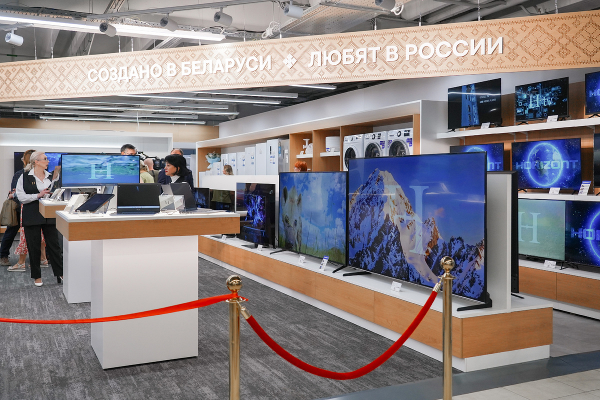 В каталоге представлено более тысячи моделей — от телевизоров и крупной бытовой техники до компактных кухонных устройств. Среди брендов — HORIZONT, ATLANT, Витязь, GEFEST, Белвар, Home Electronics и другие. Покупателям доступны телевизоры разных диагоналей, холодильники, стиральные машины, плиты, духовые шкафы, а также ноутбуки и мониторы.