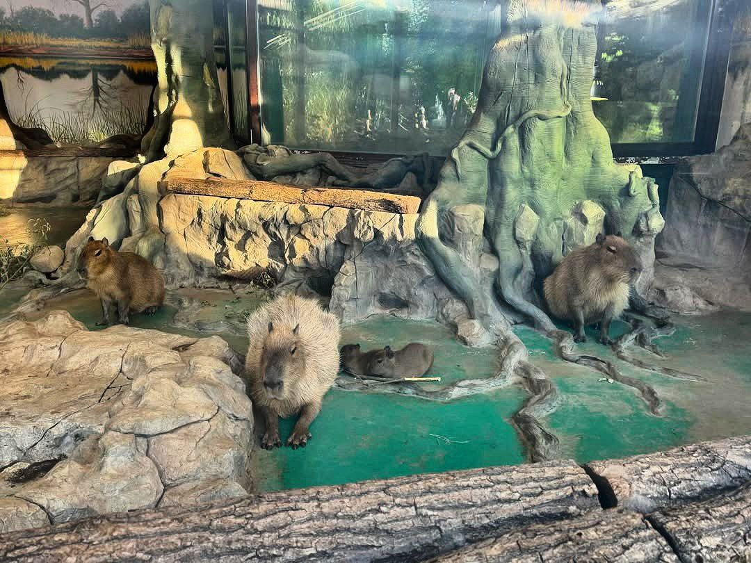 Два капибарëнка в зоопарке. Мама и детенышы чувствуют себя прекрасно. Новорожденные уже изучает свой вольер под чутким присмотром родителей. Представляете, эти крохи рождаются уже с зубками и с первого дня могут есть травку! 😊 📷Princess of china 🤩Друзья в МАХ
