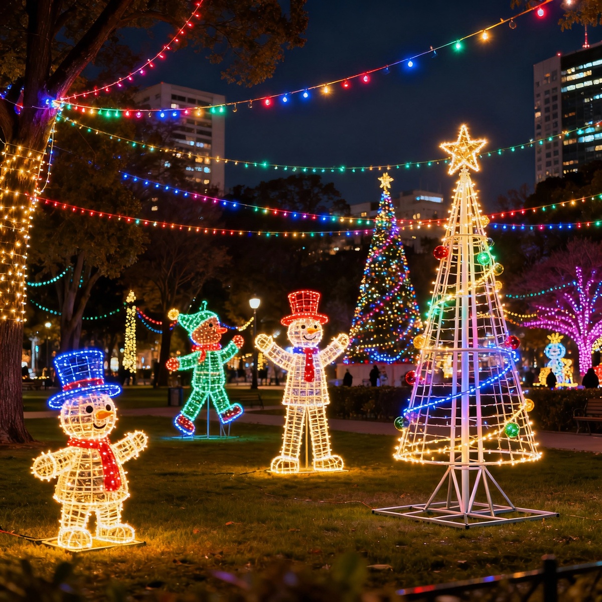 Новогодние световые фигуры стали неотъемлемым атрибутом праздничного оформления улиц, парков, площадей и торговых пространств. Их устанавливают в городских скверах, у центральных площадей, возле ТРЦ, на детских площадках и во дворах жилых комплексов. Благодаря современным материалам — стали, дюралайту, светодиодным гирляндам, мишуре и ПВХ-сетке — удается создавать конструкции любого масштаба от небольших 0,6 м до пятиметровых арт-объектов. Однако при разработке праздничных инсталляций важно учитывать не только технические параметры, но и психологическое восприятие фигур людьми разных возрастных групп. Универсальный дизайн редко производит сильный эмоциональный эффект, поэтому архитекторы и производители уделяют большое внимание адаптации: от детских образов до элегантных композиций для взрослых. Маленькие зрители воспринимают мир через игру и образы. Именно поэтому детские зоны оформления требуют: Такие световые декорации украшают детские парки, новогодние городки, школьные и дворовые