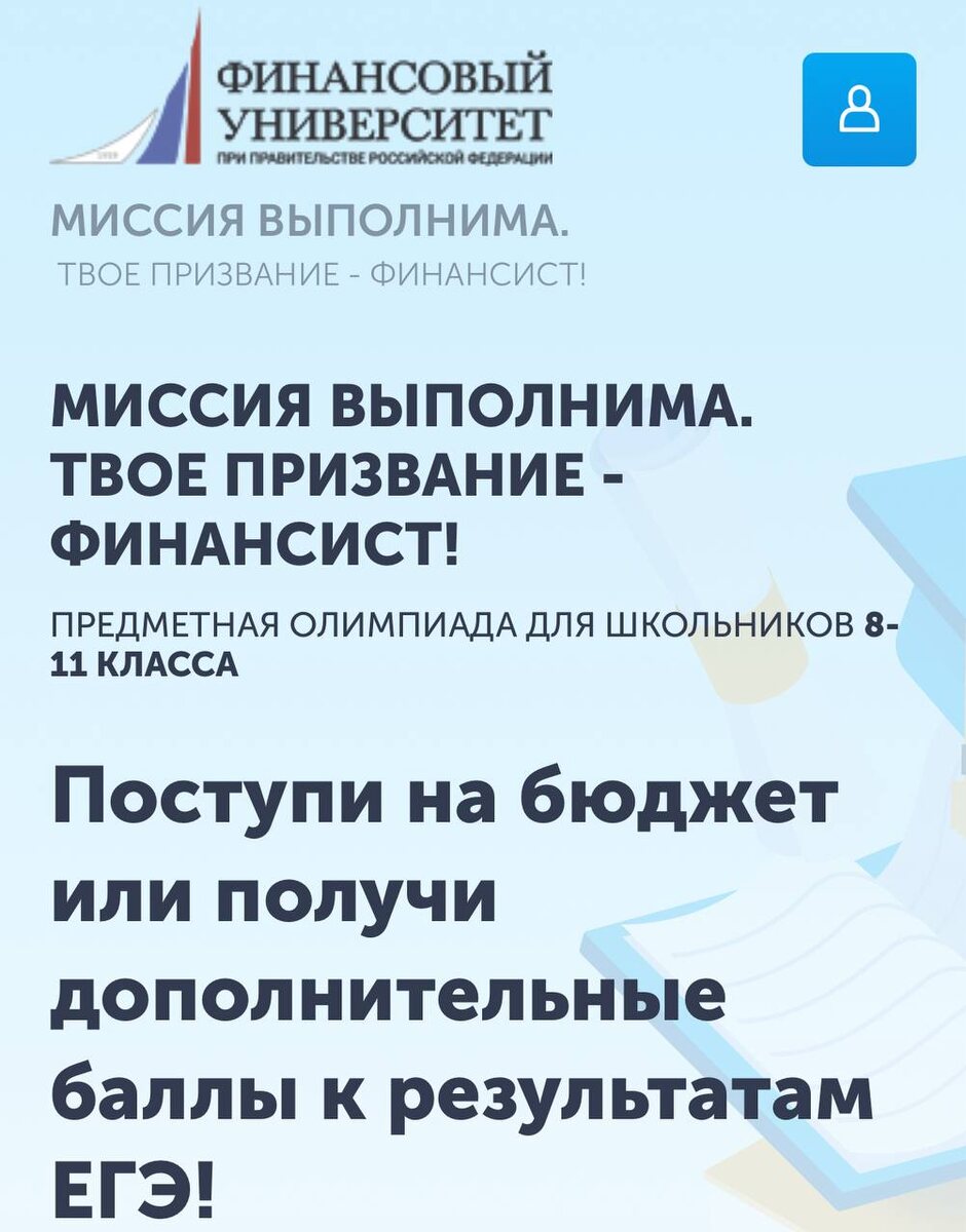 📢📢📢📢📢📢📢 Открыта регистрация 📌 на олимпиаду Финансового универистета - «Миссия выполнима» 📌 на олимпиаду РАНХиГС 🔵Олимпиада Финансового университета для 8-11 классов 🔵Олимпиада РАНХиГС для 6-11 классов 🔵Отборочный этап проходит онлайн, заключительный этап очно Преимущество олимпиады РАНХиГС – она проходит практически во всех крупных городах, ибо у них более 50 филиалов У Финансового университета более 20 филиалов 🟧🟧🟧🟧🟧 Регистрация РАНХиГС 🟧🟧🟧🟧🟧 Регистрация «Миссия выполнима»