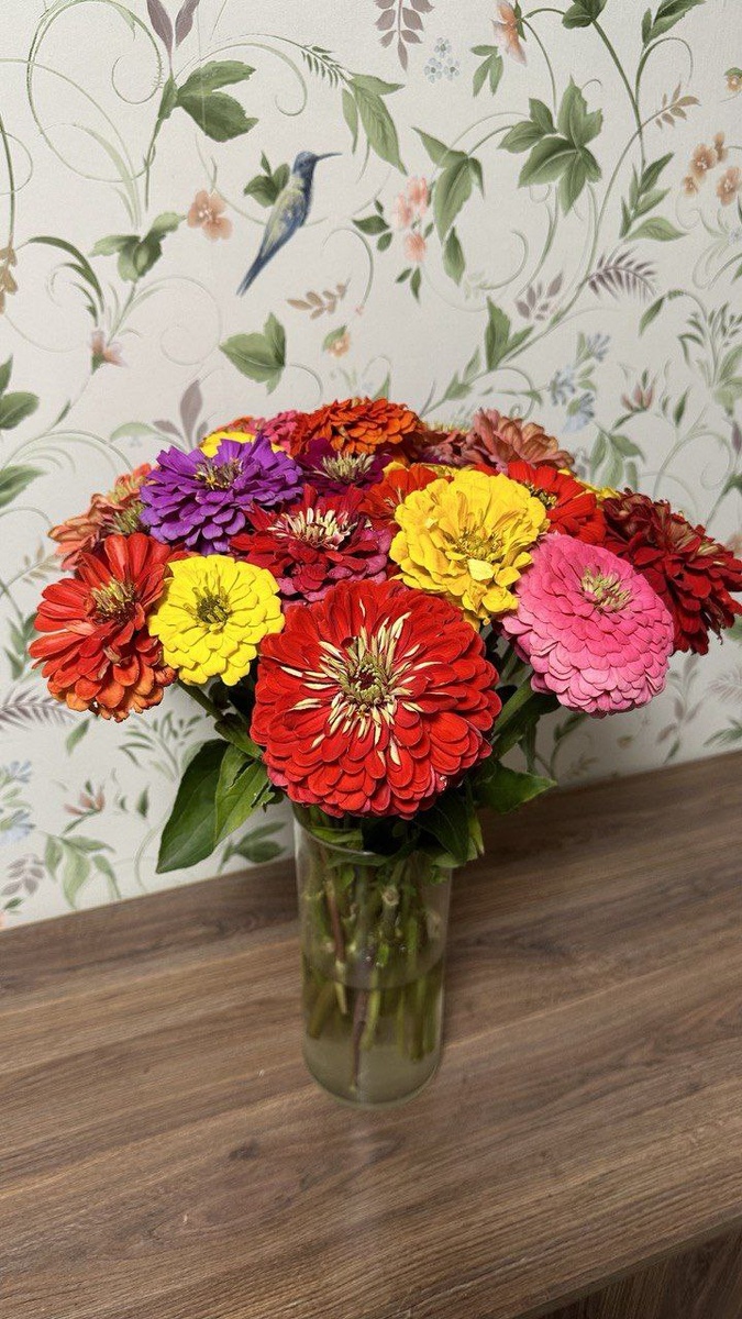 На улице уже -2 , я всё же решил затащить часть цветов в беседку.Под свет фонаря нарезал букет из цинний, завтра разделю на 2 букета и поставлю в комнате и веранде)