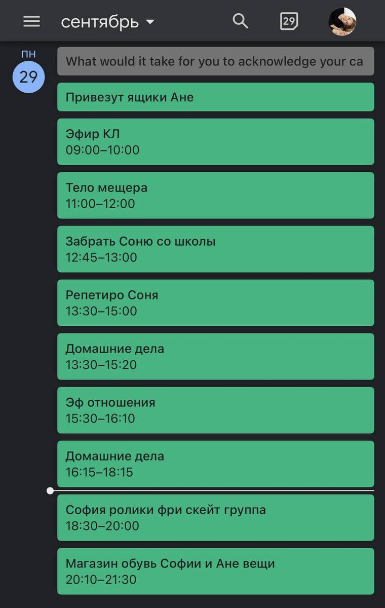 Когда я говорила о многозадачности — я не шутила. За сегодня я: приготовила еду, погладила бельё, постирала, пропылесосила комнату; 💻 участвовала в мастер-майнде 💆♀️ съездила на уход за телом забрала ребёнка из школы, по пути посмотрела час обучения по психологии 🎤 провела эфир в программе по отношениям сейчас сижу на секции по роликам, жду младшую дочь, потом магазин за одеждой и обувью для детей И всё это мой обычный, расслабленный день. При этом есть десятки мелких задач, которые я даже не записываю просто знаю, что они есть. И я не схожу с ума. Хотя в параллели у меня больше 10 проектов. ❌ Раньше я бы сломалась. ✅ Сейчас я знаю, как превращать многозадачность в силу Я не устаю от этого. Почему ? 🎥 На прямом эфире расскажу. И вы сможете проверить — есть ли у вас эта способность, и что мешает её включить. ✨ А для тех, кто готов идти глубже и менять не только задачи, но и всю систему своей жизни — через 2 дня стартует моя программа Орден Перемен.