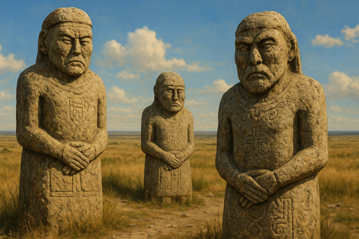 Кто поставил этих каменных воинов в степи? Находка 2024 года может переписать историю кочевников