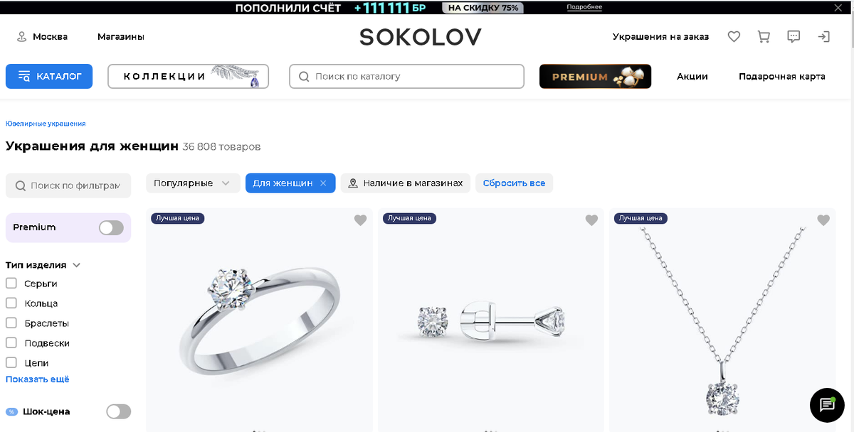- Зайдите на официальный сайт SOKOLOV.