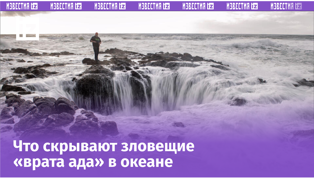 Во время приливов и штормов из его глубин поднимается бурлящий фонтан. Каким образом образовалась эта каменная воронка? И почему из океанской бездны прорываются водяные столбы высотой шесть метров? Подробнее - в материале РЕН ТВ, который публикуют «Известия».