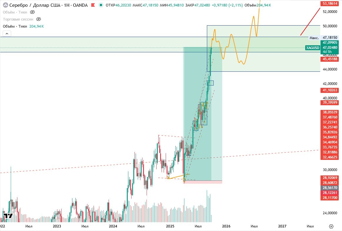 Серебро - основная целевая зона реализована - достигнуты максимумы 80 го и 11 годов
