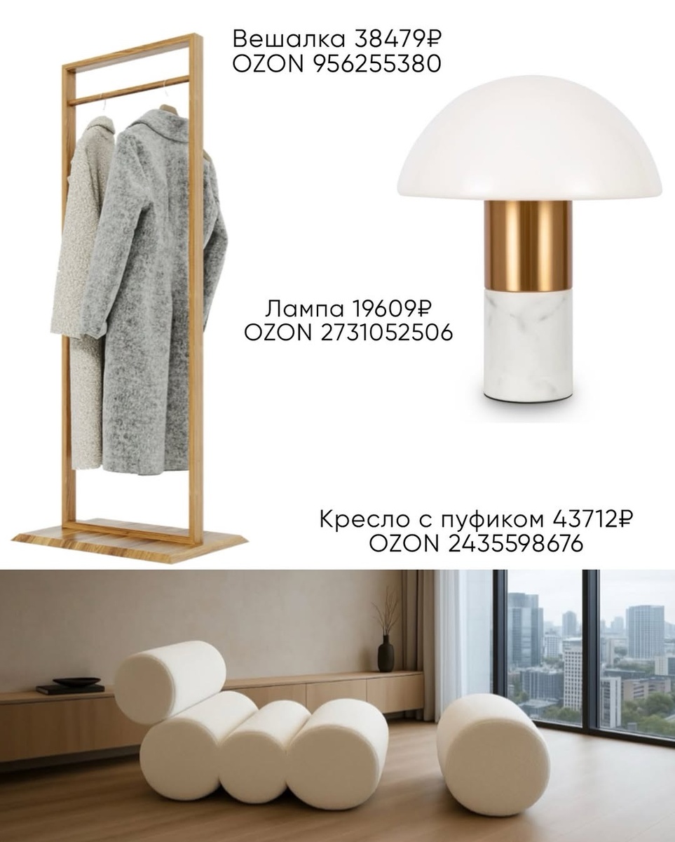 Хороший интерьер — это диалог спокойной базы и одной-двух выразительных форм. В этой подборке есть всё: удобные диваны, игривые кресла, рабочий свет, скульптурные мелочи и функциональная мебель. Берите за основу нейтральные тона, добавляйте тактильные материалы и один яркий жест — ваза, кресло или свет. Тогда дом будет выглядеть цельным, а вещи с «Озон» станут вашими долгими союзниками в красоте и комфорте.