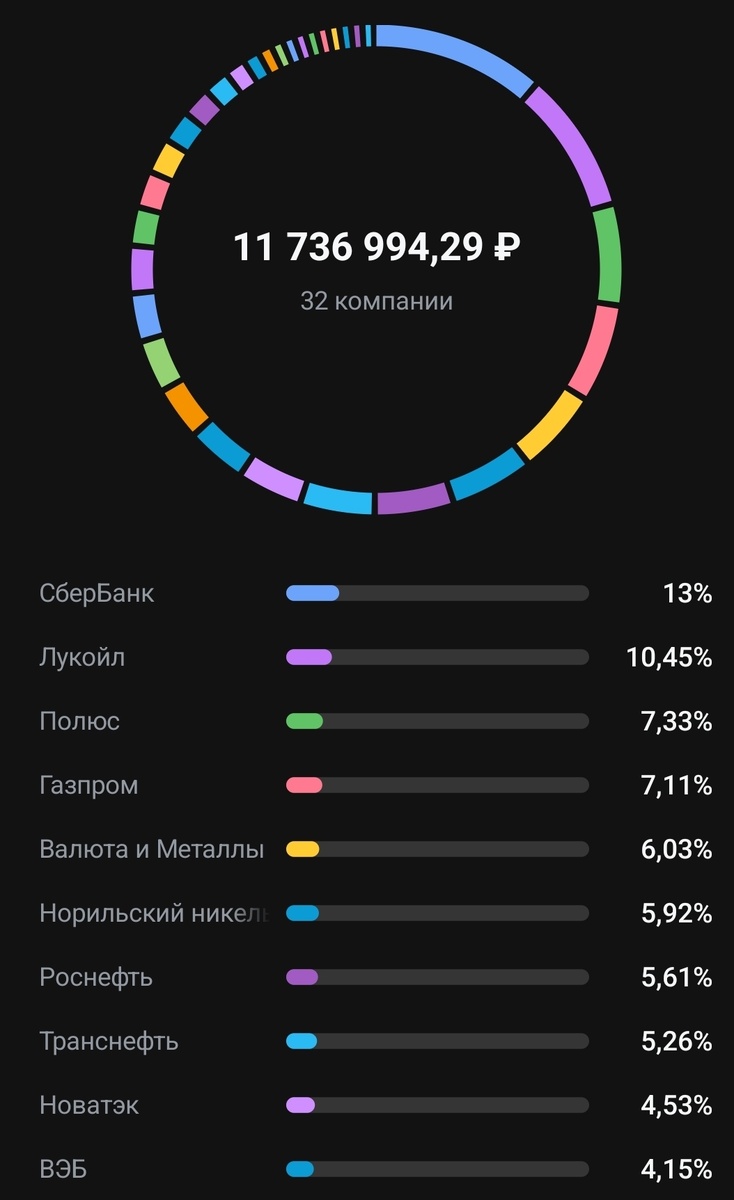 Всех приветствую, Сентябрь закрылся на отметки 11 млн 730 тысяч Удержаться на августовской отметки: 12 млн 97 тысяч рублей не удалось. Геополитика она такая: туда-сюда. Пополнений не было, поэтому и сделок в портфеле практически не было. Мы не знаем будущего, к сожалению сейчас у меня нет возможности ежемесячного пополнения. В замен у меня есть рублевый кэш в портфеле и золото на случай крупных просадок, пока я ее не расчехлял, думаю ближе 2550 -2600 по индексу я начну покупки. По многим компаниям цены уже очень приятные. Ну и приглашаю в мой телеграмм