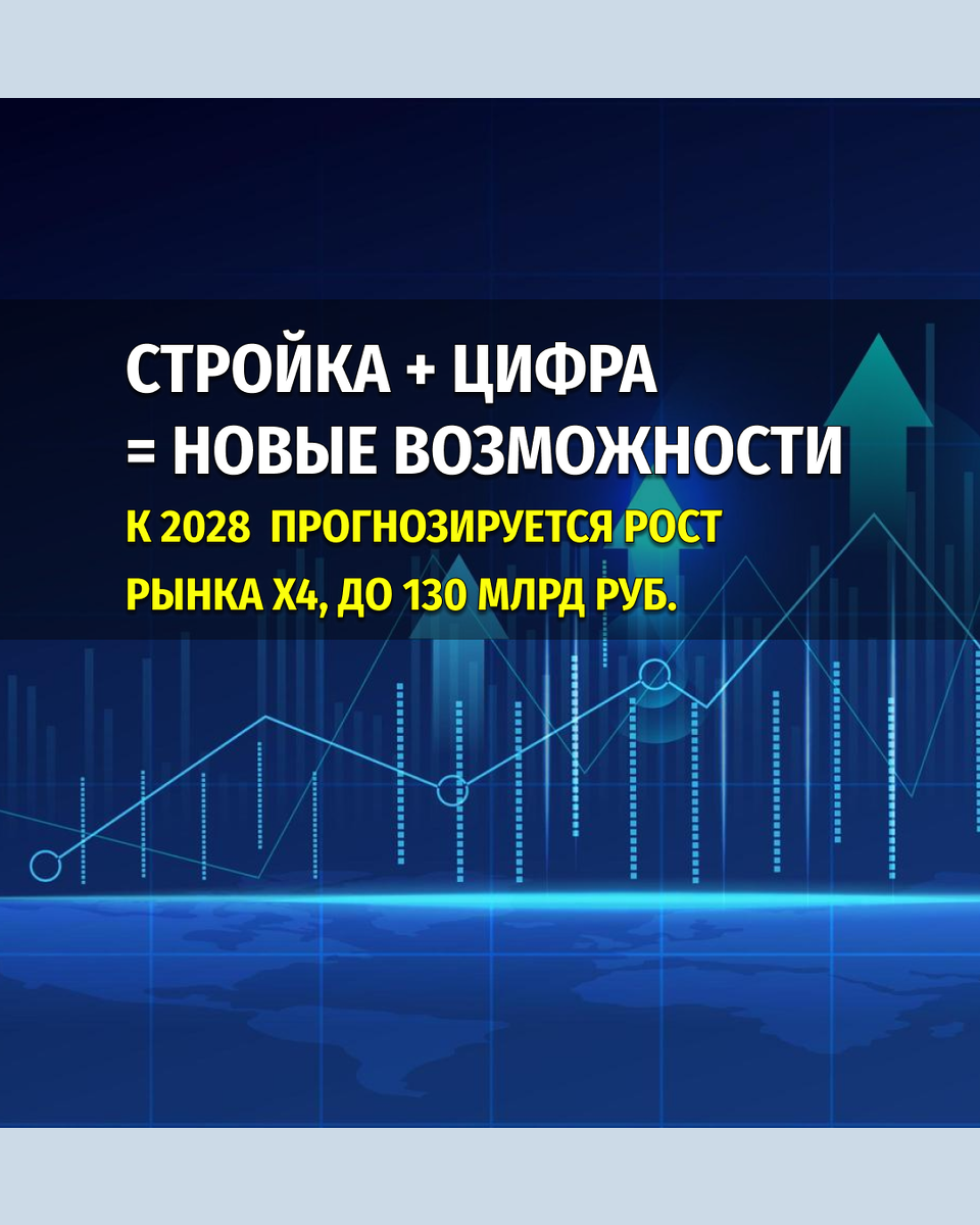 Рынок цифровизации строительства растет ежегодно в 2 раза. К 2028 году прогнозируется рост в 4 раза до 130 млрд. руб. С развитием технологий, бизнес оцифровывает все возможные процессы, для того чтобы эффективнее управлять ими. И строй отрасль, хоть она максимально консервативная, не становится исключением. Является одной из ключевых отраслей экономики страны. По официальным данным Росстата, её объем за 2024 год составил более 15 трлн. руб. Ежегодный рост в среднем 5-7%. Даже после периодов спада в кризисные года 1998, 2008, 2013, 2018, 2022, отрасль отрастала до прежних показателей за 1-2 года и продолжала расти. которые оцифровывают процессы на стройке, оптимизируют их или решают сложные задачи. Буквально 5 лет назад, в стройке было чуть более 100 цифровых продуктов, в основном в сфере проектирования, но на сегодняшний день в России их насчитывается уже более 900. Активно развиваются: По данным исследования Компании Самолет 80% строителей отмечают положительный эффект от внедрения