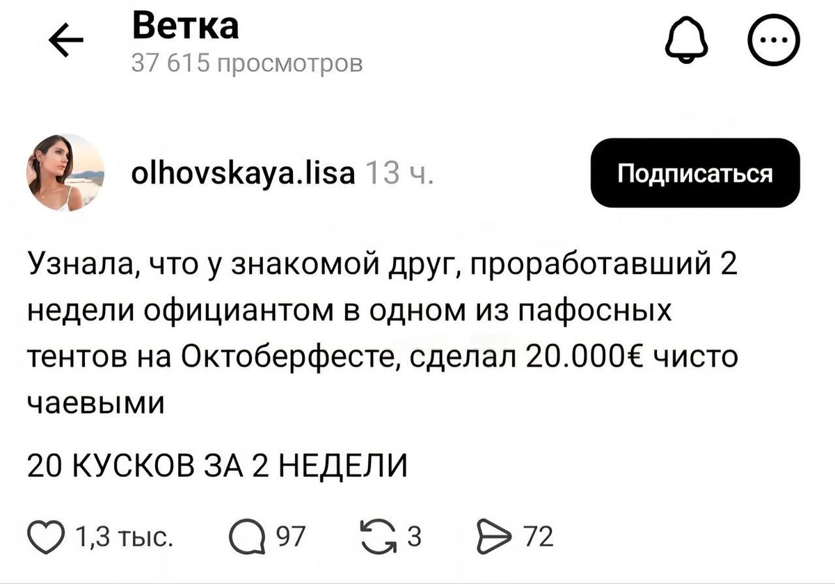 «Как простая работа на Октоберфесте принесла 2 миллиона всего за пару недель?»