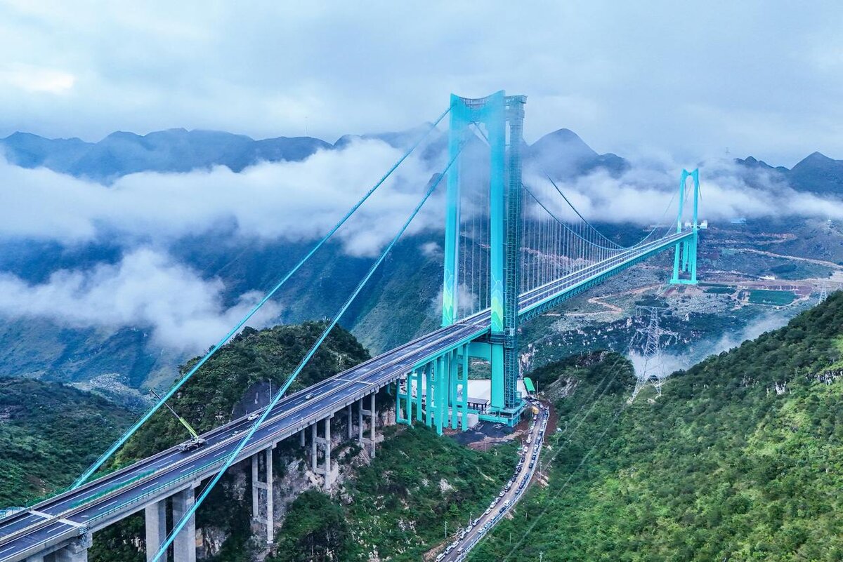 😱 В провинции Гуйчжоу в Китае открыли самый высокий автомобильный мост — 625 метров над уровнем реки Бэйпаньцзян. Это всего на 7 метров ниже, чем Шанхайская башня, самый высокий небоскреб материкового Китая.