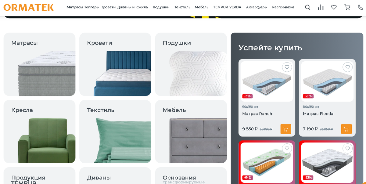 В нежных объятиях акций и предложений! ORMATEK поддерживает клиентов специальными акциями и программами лояльности. Не упустите возможность участвовать в выгодных предложениях — следите за обновлениями. Хит сезона или новая коллекция — вы всегда на волне!