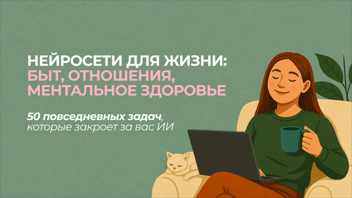 Я собрала 50 таких задач — из психологии, семьи, дома, здоровья, саморазвития. Тех, где мы чаще всего застреваем и где с ИИ всё решается проще и быстрее.