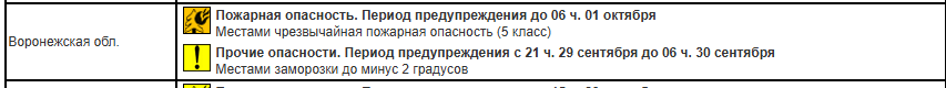 Период предупреждения – с 21 часа 29 сентября до 6 часов утра 30 сентября.