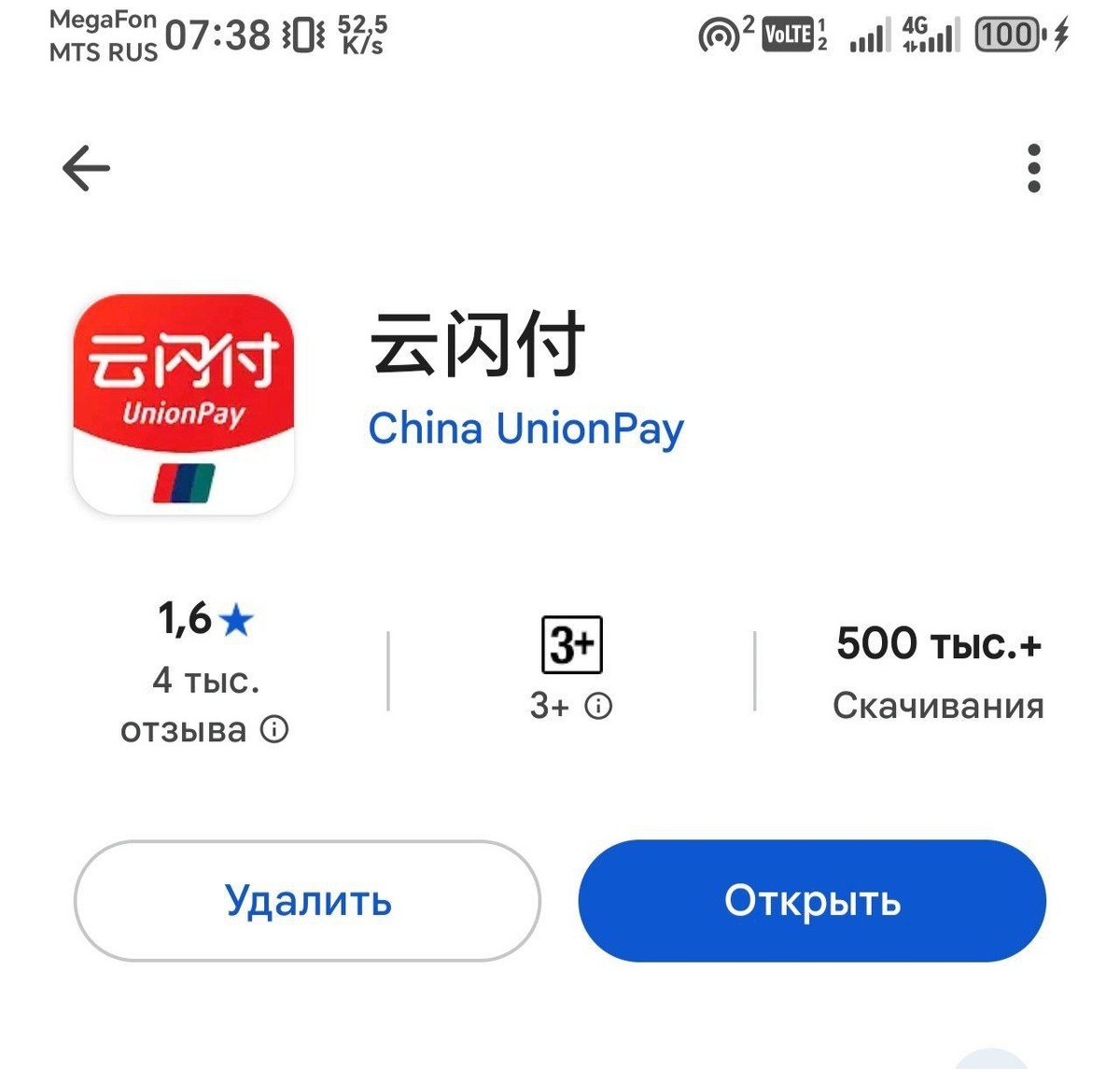 2. Установите приложение UnionPay из Google Play или AppStore. Ссылка для Android.