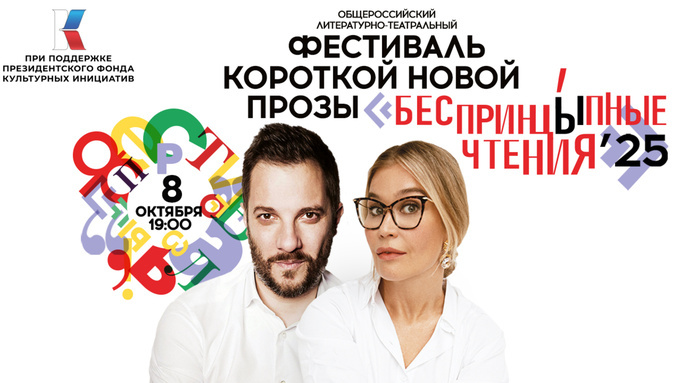 Задача Фестиваля Короткой Новой прозы "БеспринцЫпные чтения" – развивать русскую литературу и знакомить слушателей с современной прозой 8 октября в 19:00 в Барнауле в Алтайском краевом театре драмы им. Василия Шукшина пройдет Фестиваль Короткой Новой прозы "БеспринцЫпные чтения" 2025. Хедлайнеры – Кристина Бабушкина и Александр Цыпкин. Специальный гость – Константин Борнеман, победитель конкурса фестиваля в номинации "Чтец". Зрителей ждет специальная программа: в этот вечер прозвучат лучшие рассказы и новые произведения сопродюсера "БеспринцЫпных чтений" и писателя Александра Цыпкина, в том числе и в исполнении самого автора, а также будут представлены произведения лауреатов фестиваля 2025 года. Задача Фестиваля Короткой Новой прозы "БеспринцЫпные чтения" – развивать русскую литературу и знакомить слушателей с современной прозой, а его главная цель – дать новым авторам и чтецам возможность заявить о себе на сцене, выступая наравне с известными артистами и авторами. Фестиваль Короткой Н